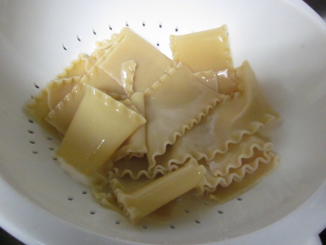 Листы лазаньи отвариваем согласно инструкции на упаковке (есть и листы, не требующие предварительного отваривания).