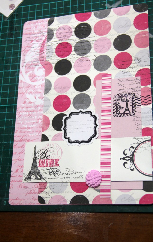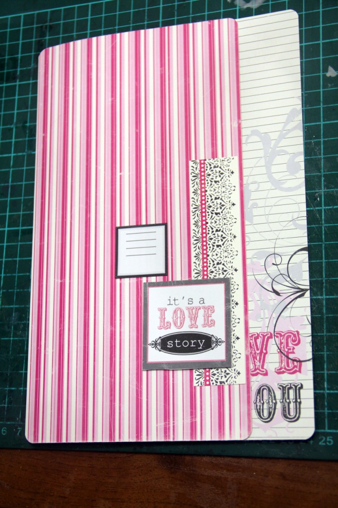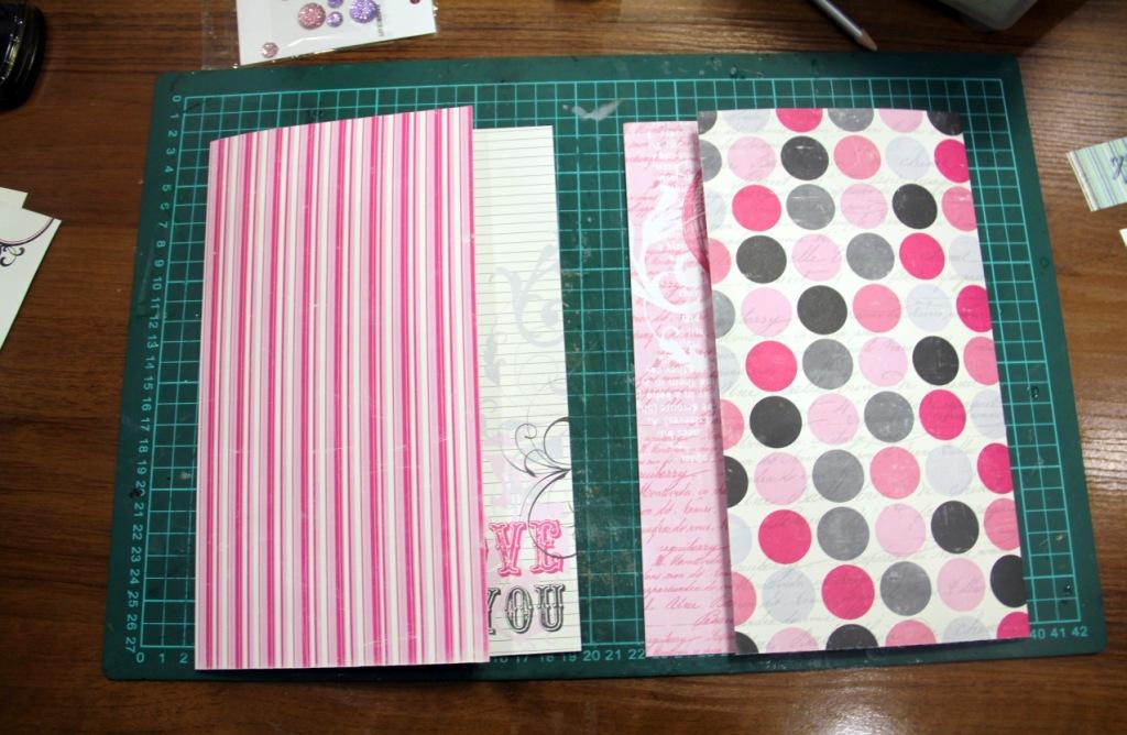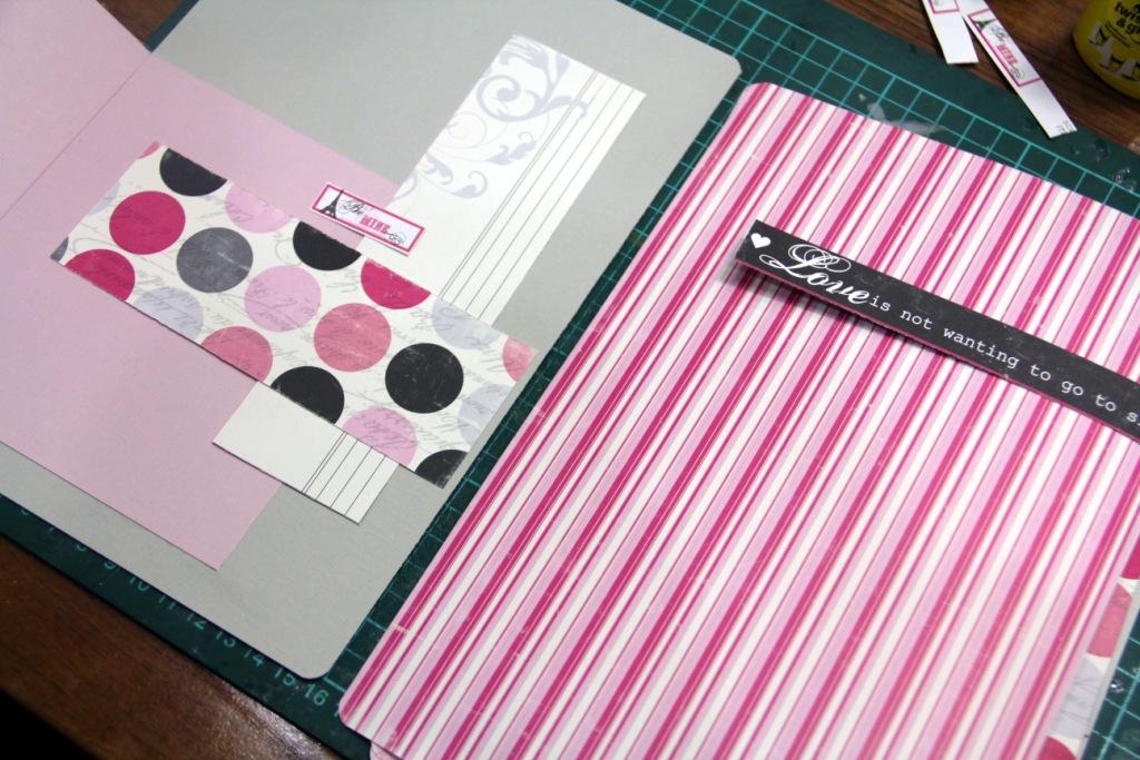 Скругляем углы и приклеиваем серую и розовую страничку к форзацам пивного картона. Собираем на биндер или кольца. Если будете собирать на кольца, то берите маленький диаметр и вдевайте не меньше 4-х. Так конструкция будет устойчивее.