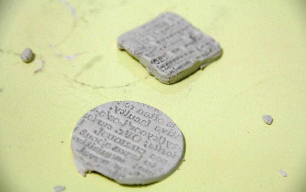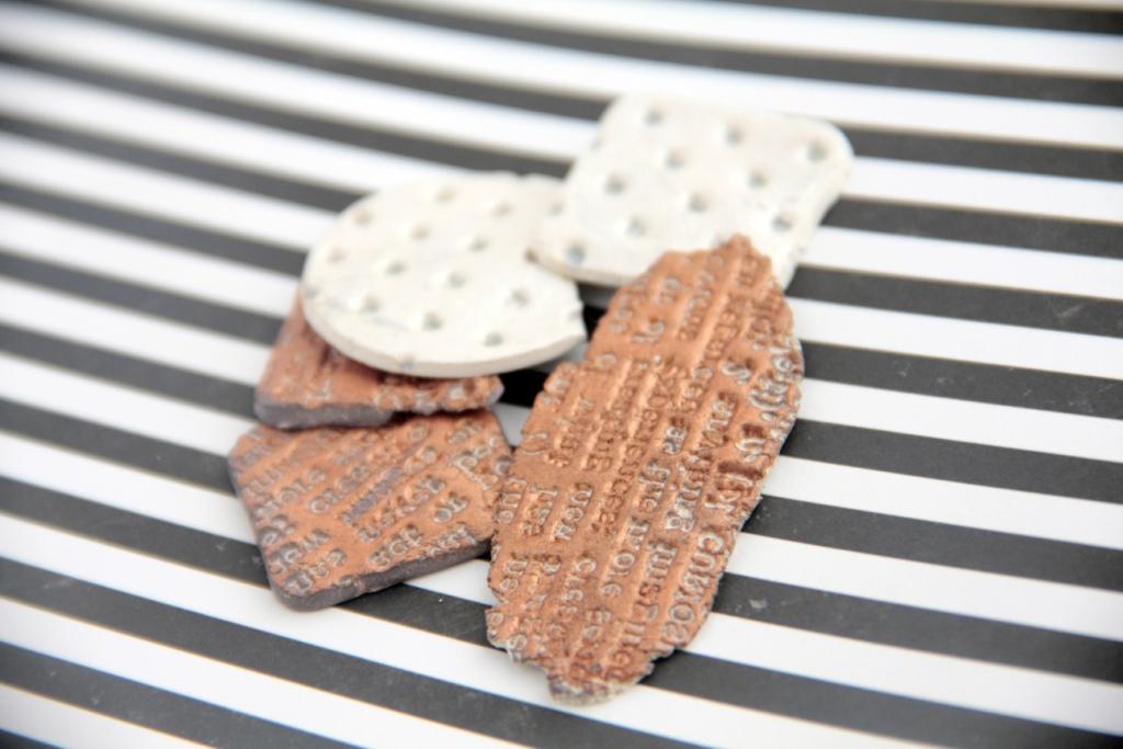 Для того, чтобы сделать красивые фишечки нам понадобятся: самозастывающая глина, палка-раскатывалка), штамп с мелким рисунком (лучше взять какой-нибудь фоновый), формочки для вырезания (можно пекарские использовать), подсолнечное масло, акриловые краски. Приступаем?