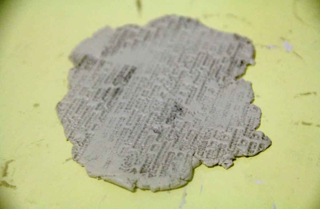Раскатываем в лепешку. Старайтесь лепешку делать не очень тонкой, иначе после высыхания фигурки будут ломкими.
