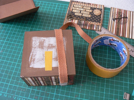 Приклеиваем на откидную крышку украшенные заготовки из скрап - бумаги.