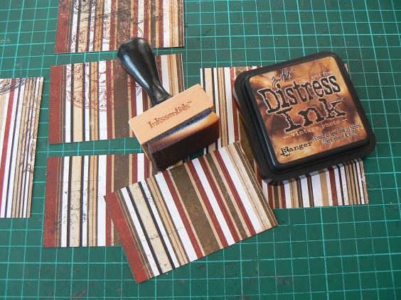Украшаем наши заготовки по вашему усмотрению, в моем случае это штампы чернилами Stazon и эмбоссинг черной пудрой. И приступаем к обклеиванию коробочки скрап бумагой.