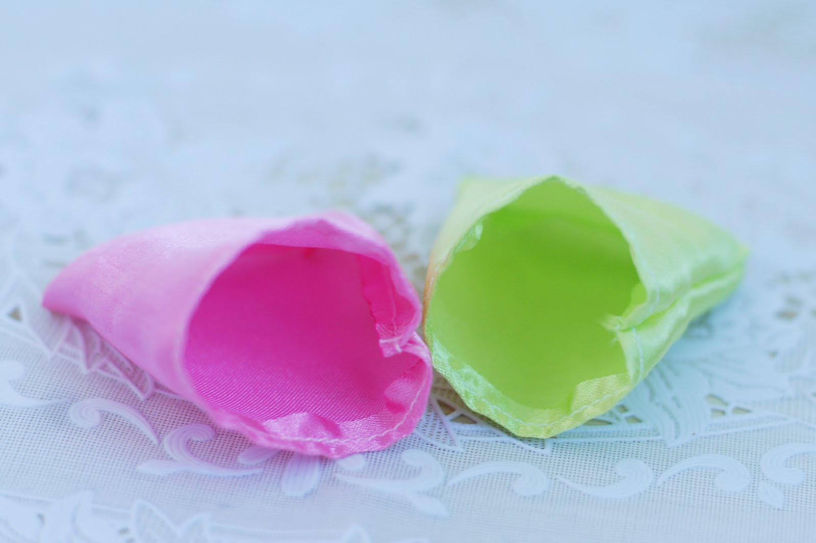 дальше необходима ткань, я взяла двух цветов. Из нее нужно нашить много маленьких