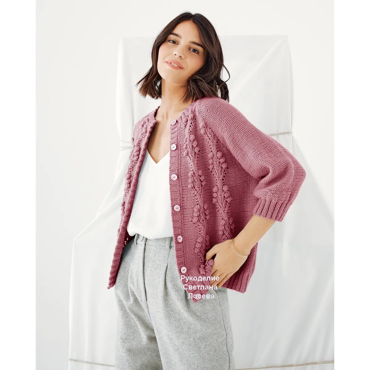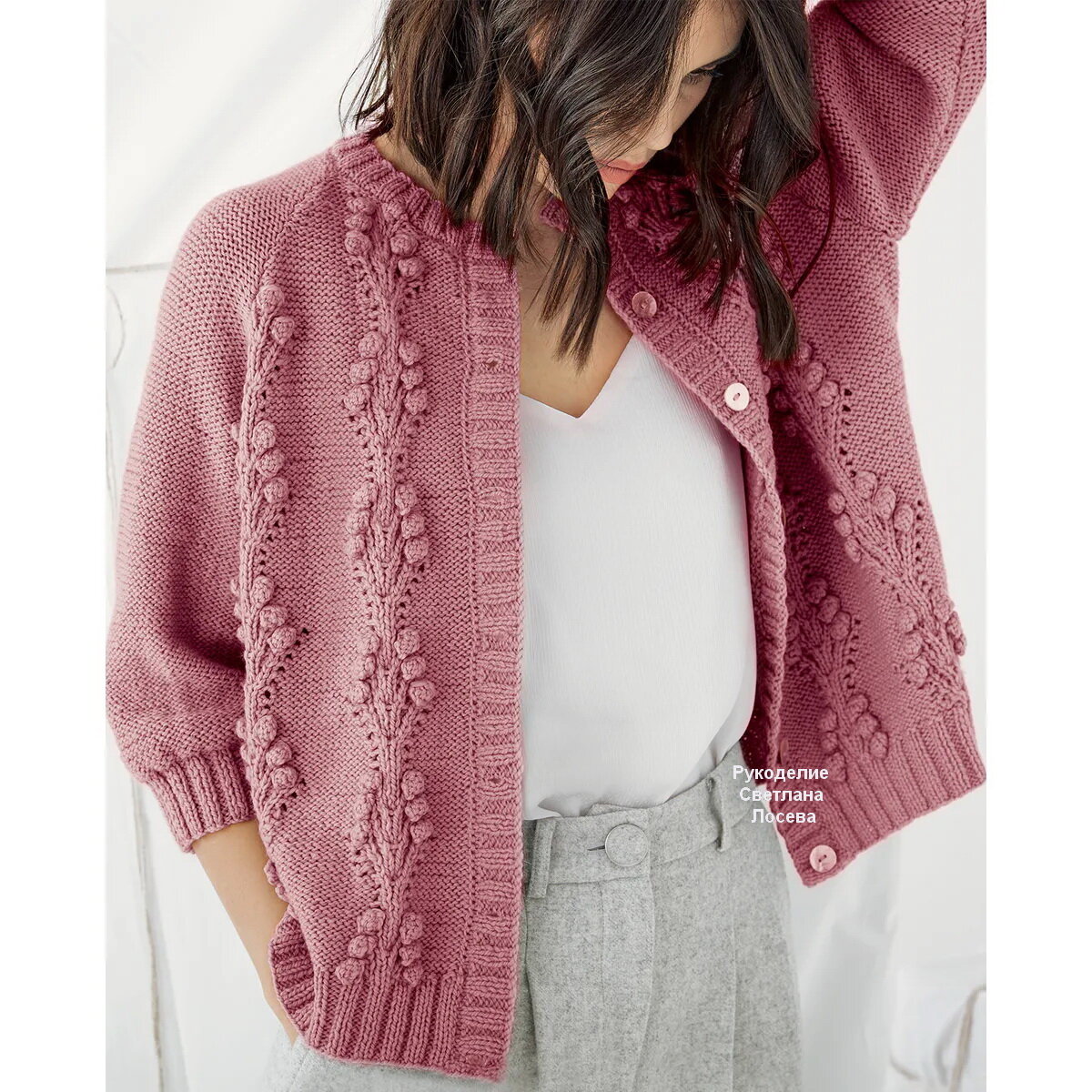 Шишечки я вязала крючком. А у модели они связаны спицами и очень объемные.