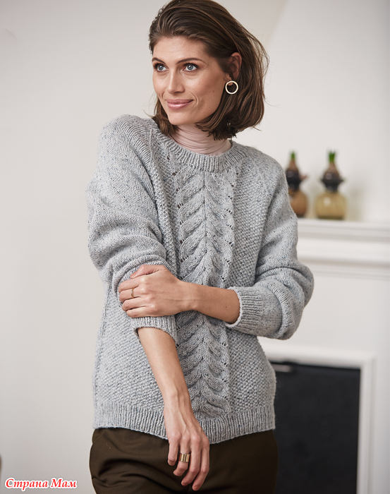 Пряжа (50% овечьей шерсти, 25% вискозы, 25% шерсти альпака; 50 г/110 м) – 9 (10) 11 (12) мотков светло-серой; спицы № 4,5 и 5; круговые спицы № 4,5 длиной 40 см.