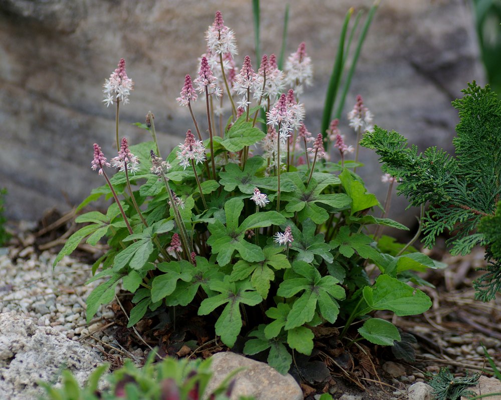 Многолетник. Время цветения зависит от вида. Тиарелла Верри цветет с июня по сентябрь и не разрастается. Тиарелла многолистная цветет в мае — июне. По продолжительности цветения, это долгоцветущие цветы. Высота растений средняя, 30 — 50 см. Эти садовые цветы цветущие в тени плохо переносят прямое солнце и недостаток влаги.