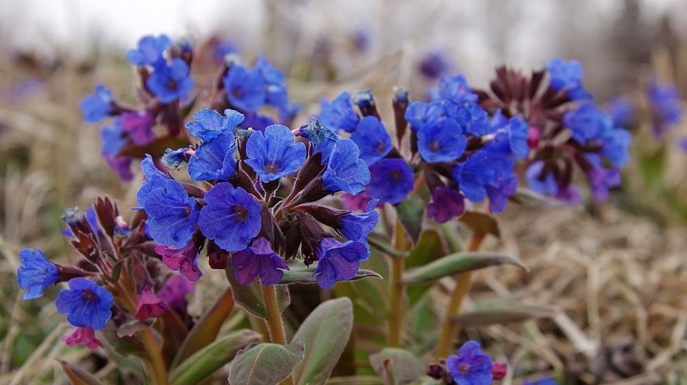 Это цветы которые любят тень знакомы очень многим с детства. Именно она растет в тени леса и если попробовать на вкус ложе цветоноса, то она будет сладкой на вкус. Отсюда и пошло название этого цвета. Листья этого растения с белыми пятнами, цветки меняют окраску с розовой на синюю. Есть сорта с цельнозелеными листьями и разнообразной окраской цветов. Высота растений 30 — 40 см. Может сильно разрастаться и относится к почвопокровным цветам, поскольку цветы могут сильно куститься. Делят и пересаживают медуницу 1 раз в 3 года. Относится к весеннецветущим растениям. Время цветения: апрель — май.