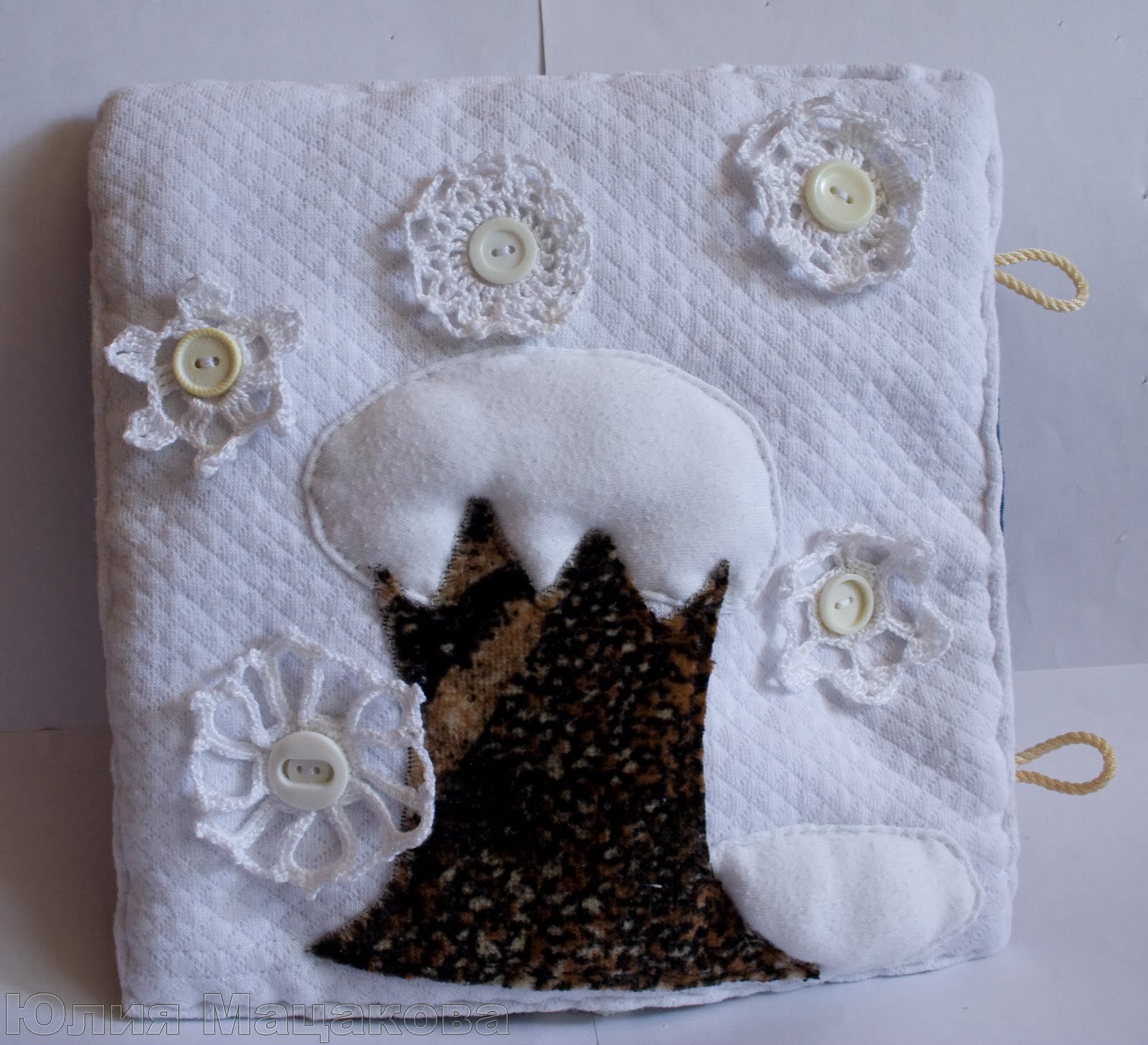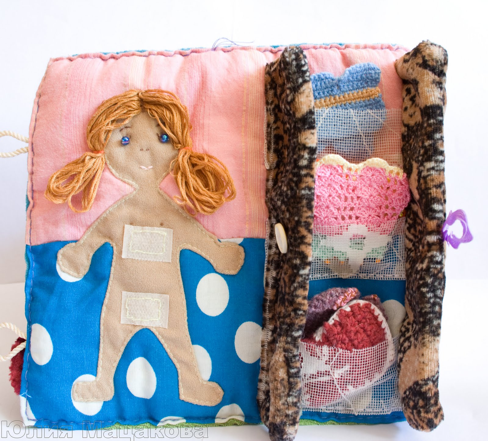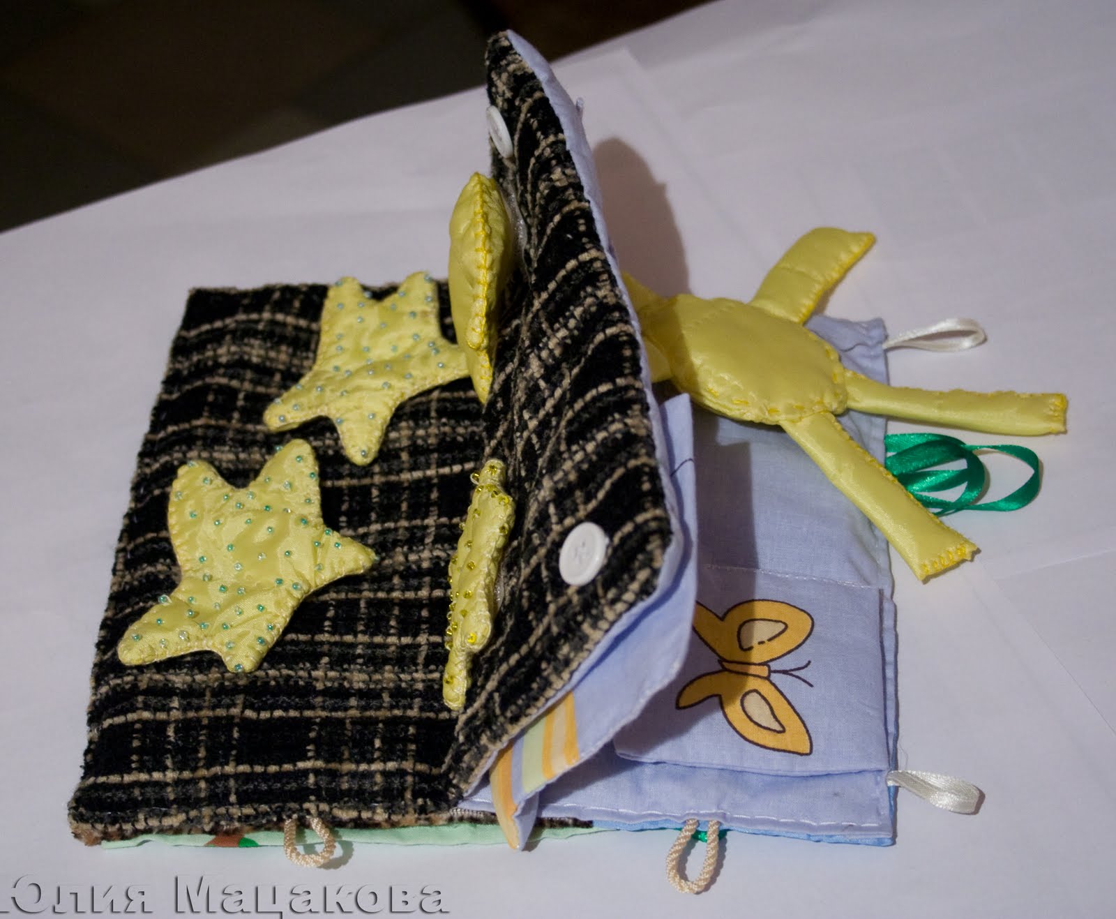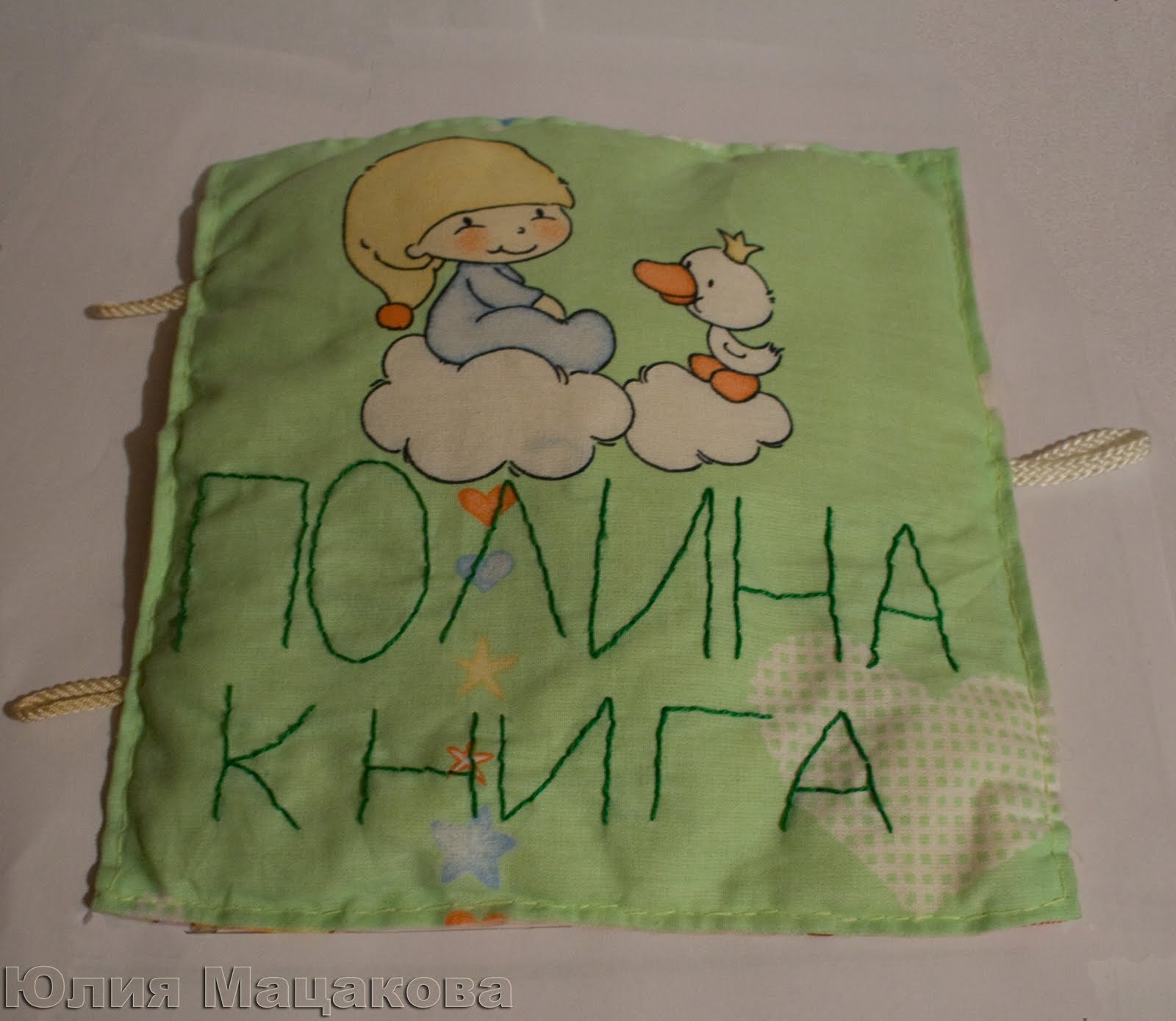 Сшила дочке вот такую книгу. Время работы - 2 месяца. В книге 20 страниц на петельках, в которые потом продевается лента. В каждой страничке - подкладка из синтепона. Все абсолютно сделано вручную;)