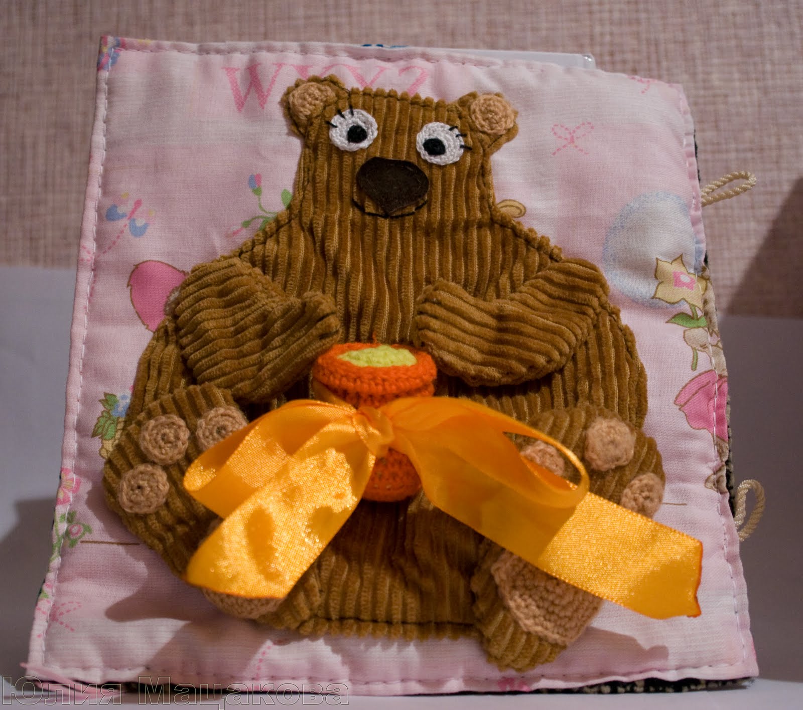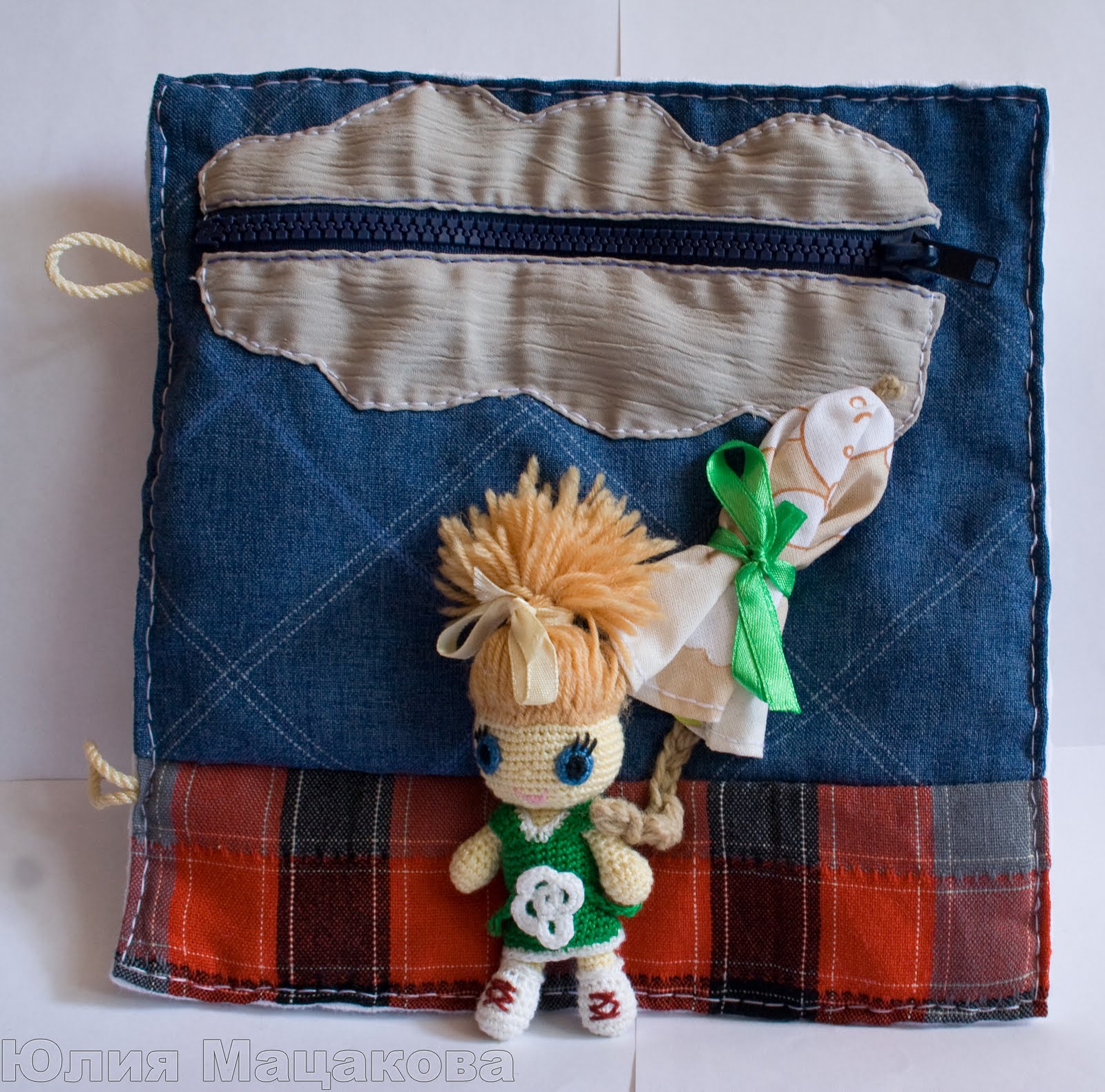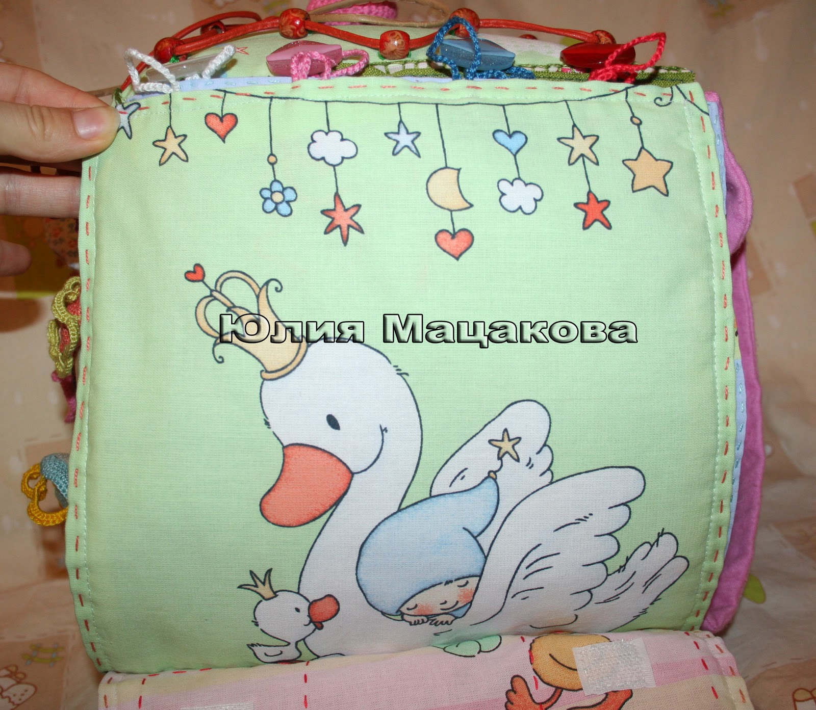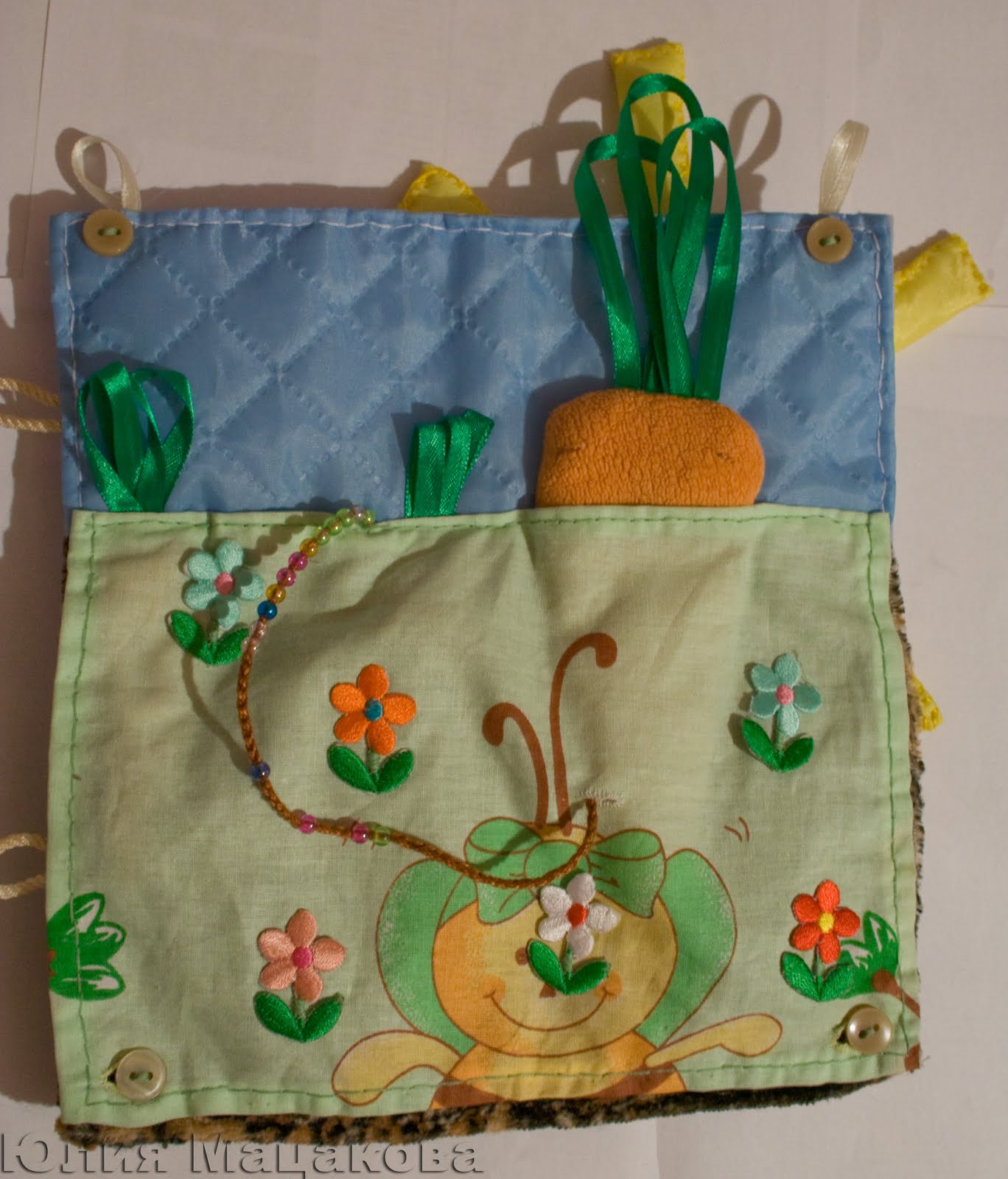 Сшила дочке вот такую книгу. Время работы - 2 месяца. В книге 20 страниц на петельках, в которые потом продевается лента. В каждой страничке - подкладка из синтепона. Все абсолютно сделано вручную;)