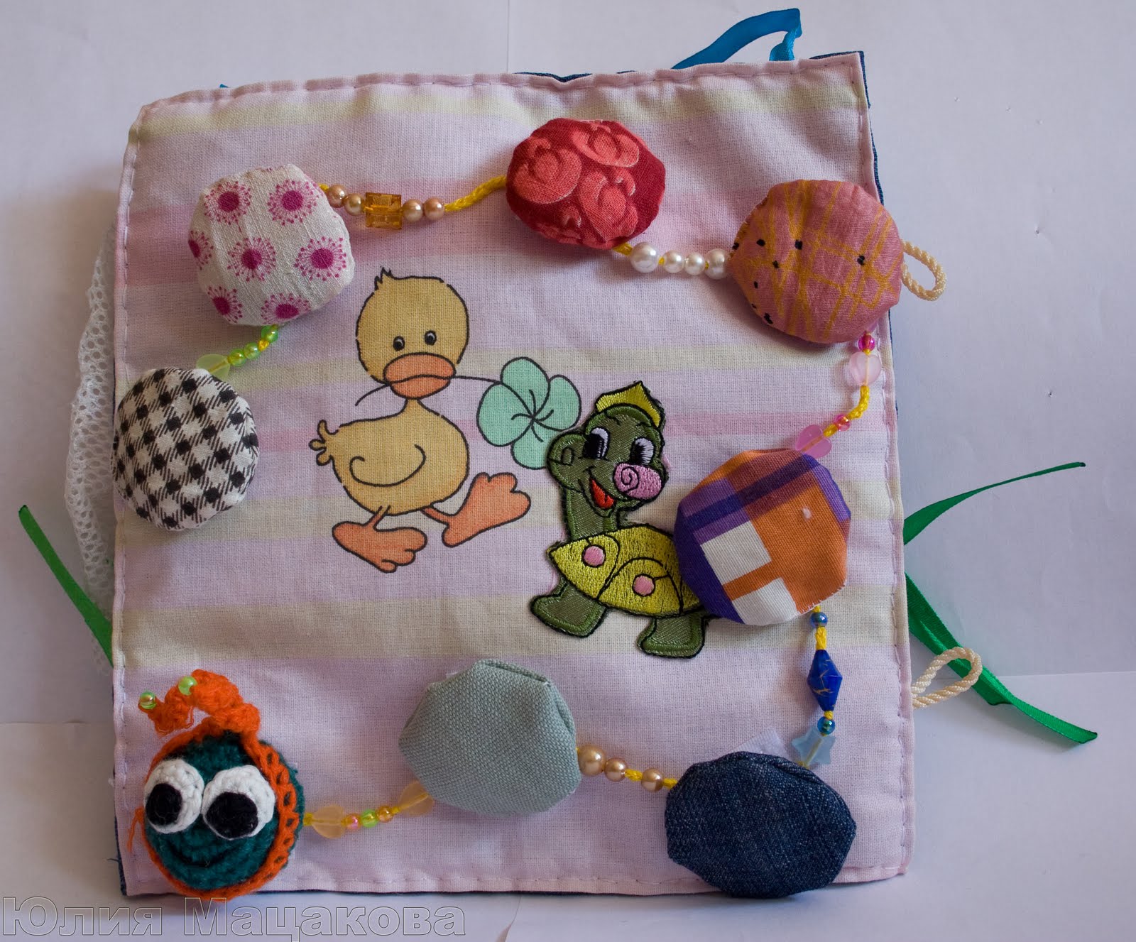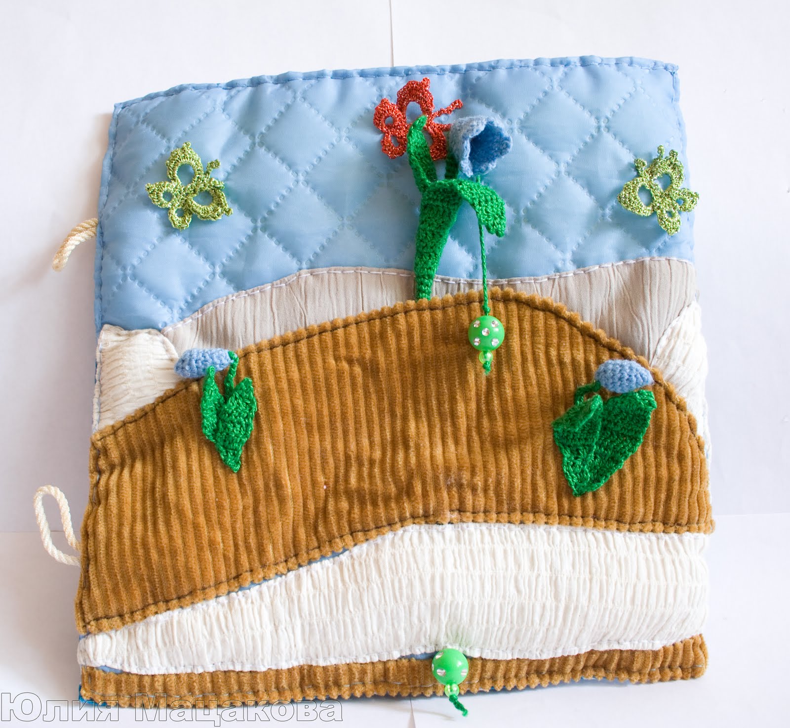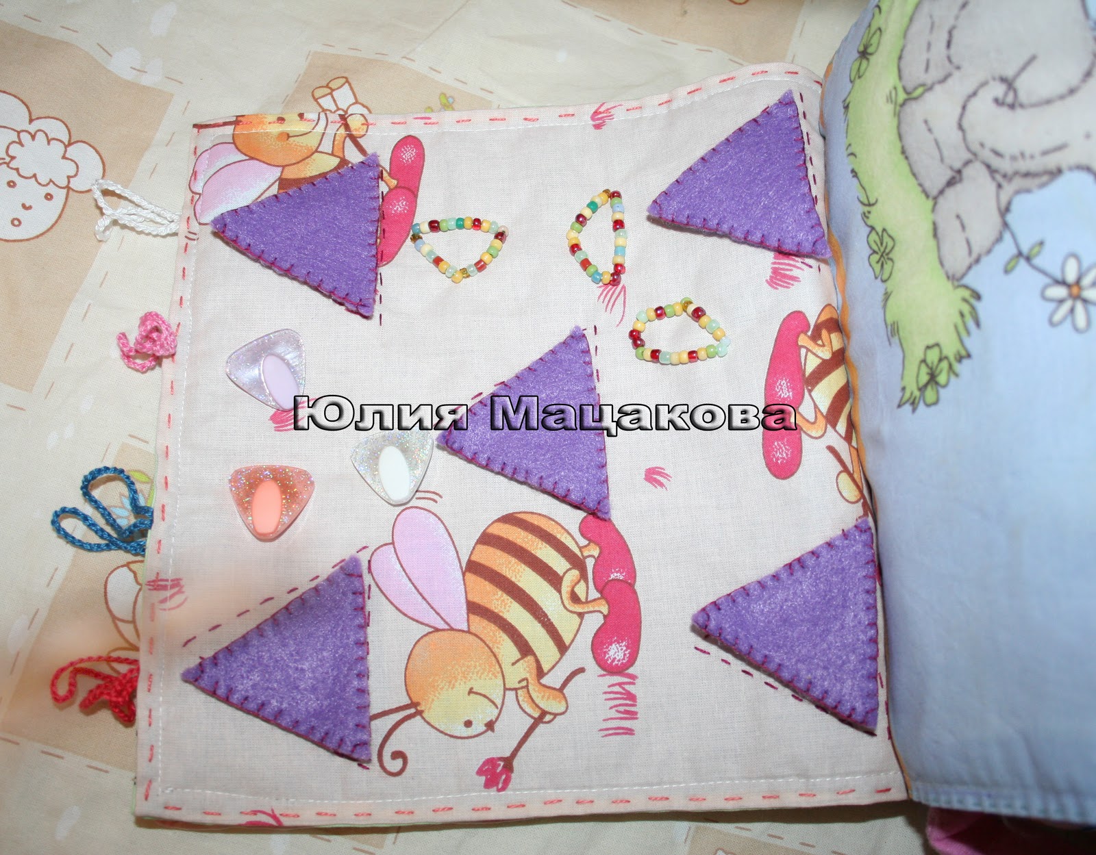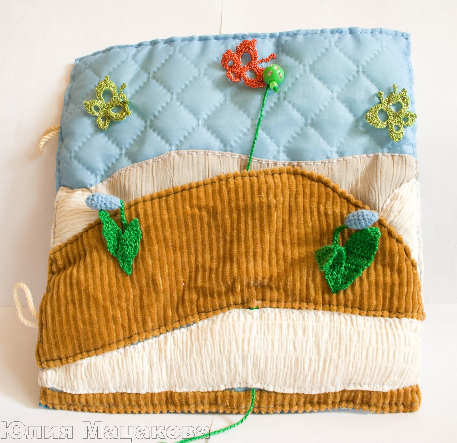 Сшила дочке вот такую книгу. Время работы - 2 месяца. В книге 20 страниц на петельках, в которые потом продевается лента. В каждой страничке - подкладка из синтепона. Все абсолютно сделано вручную;)