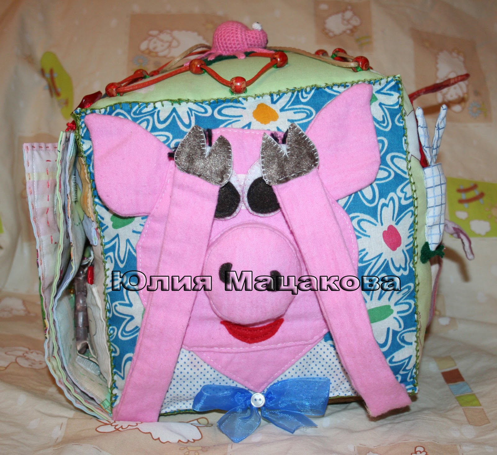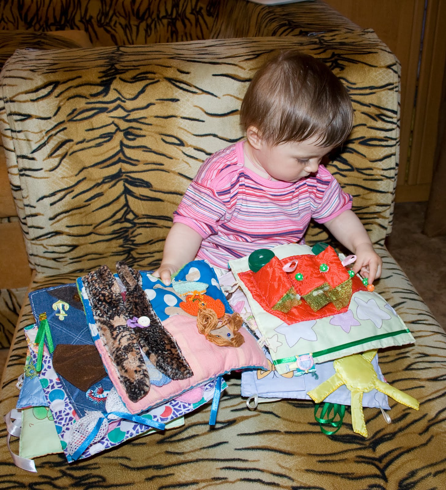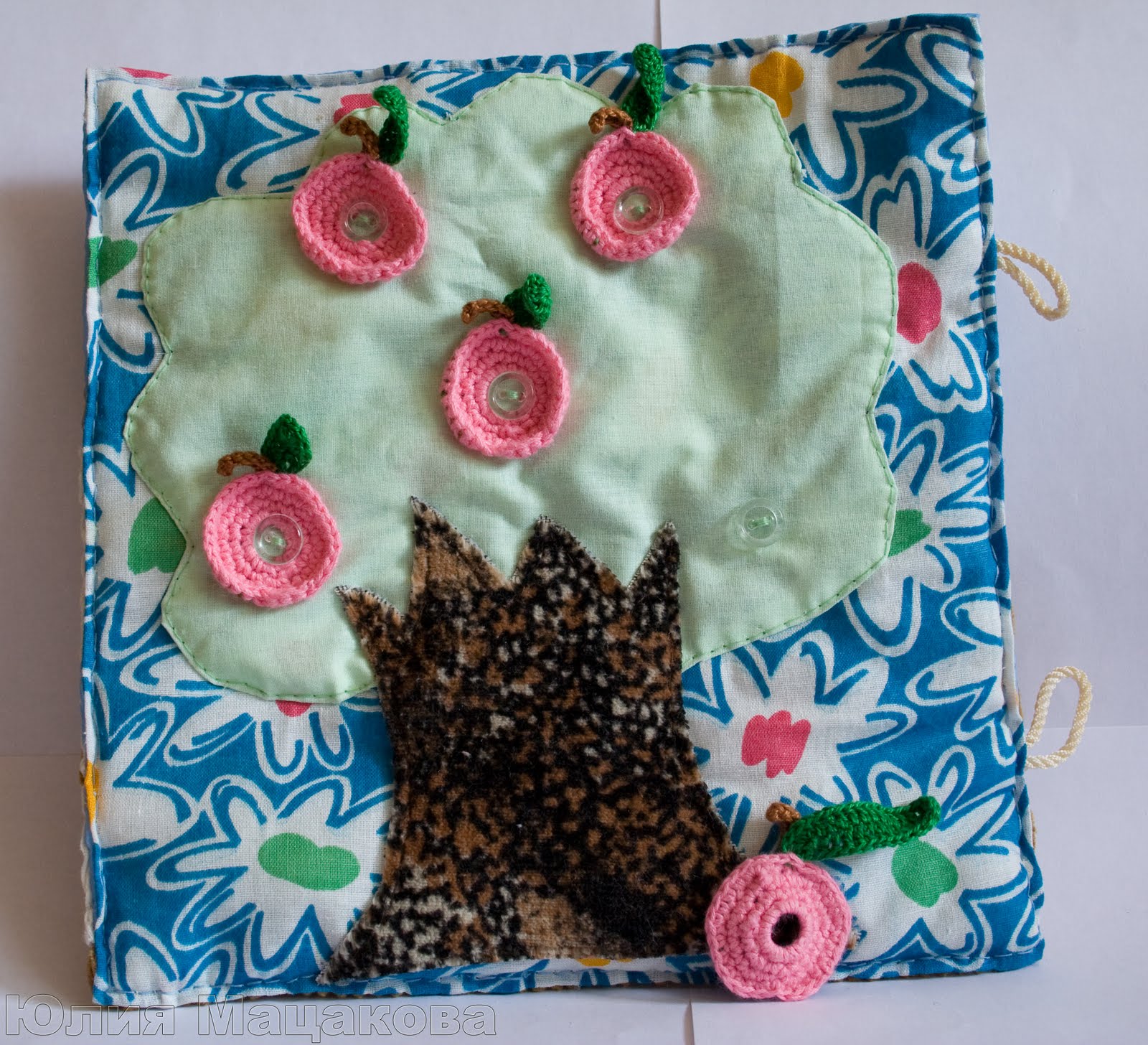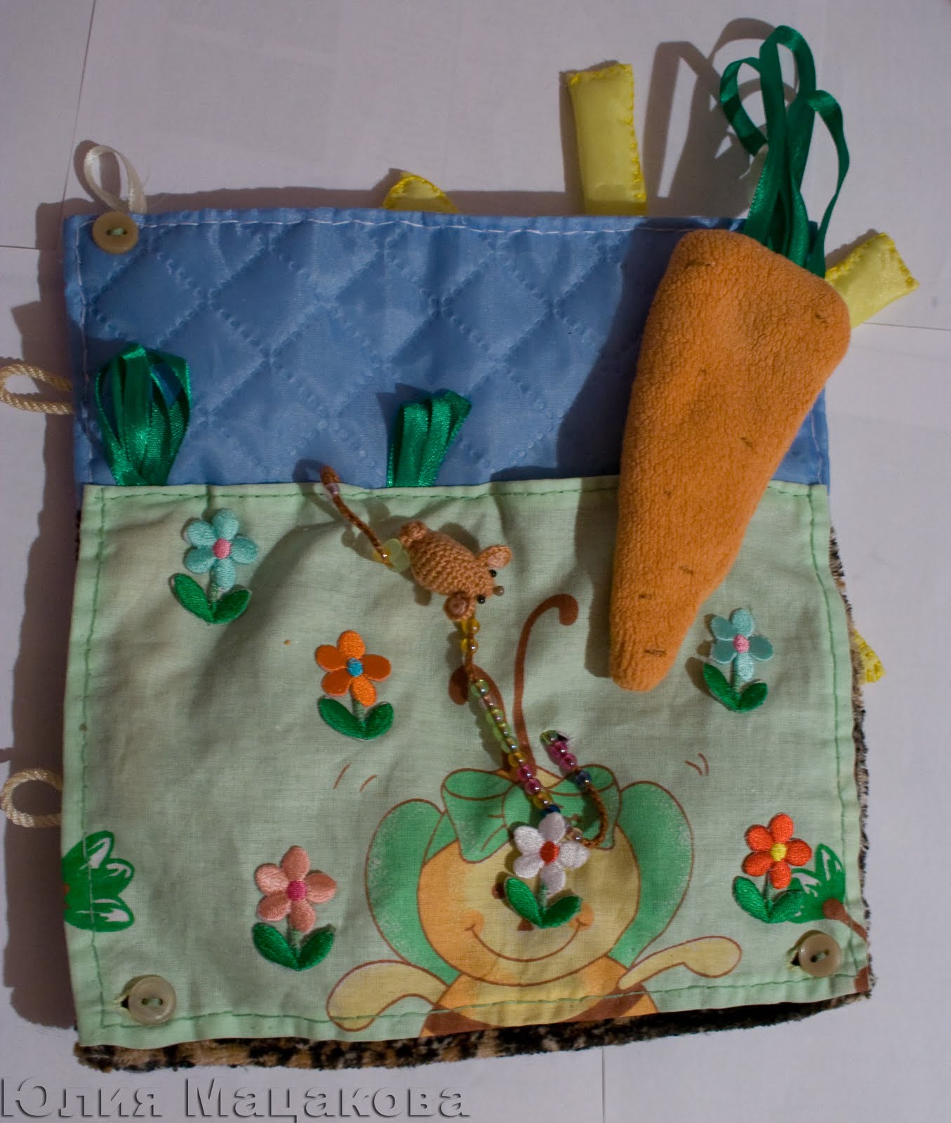 Сшила дочке вот такую книгу. Время работы - 2 месяца. В книге 20 страниц на петельках, в которые потом продевается лента. В каждой страничке - подкладка из синтепона. Все абсолютно сделано вручную;)