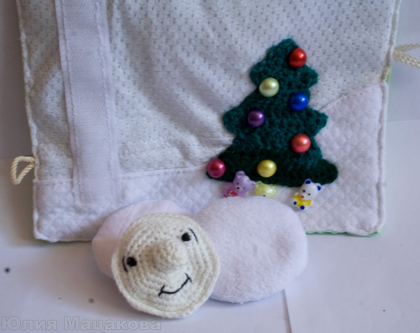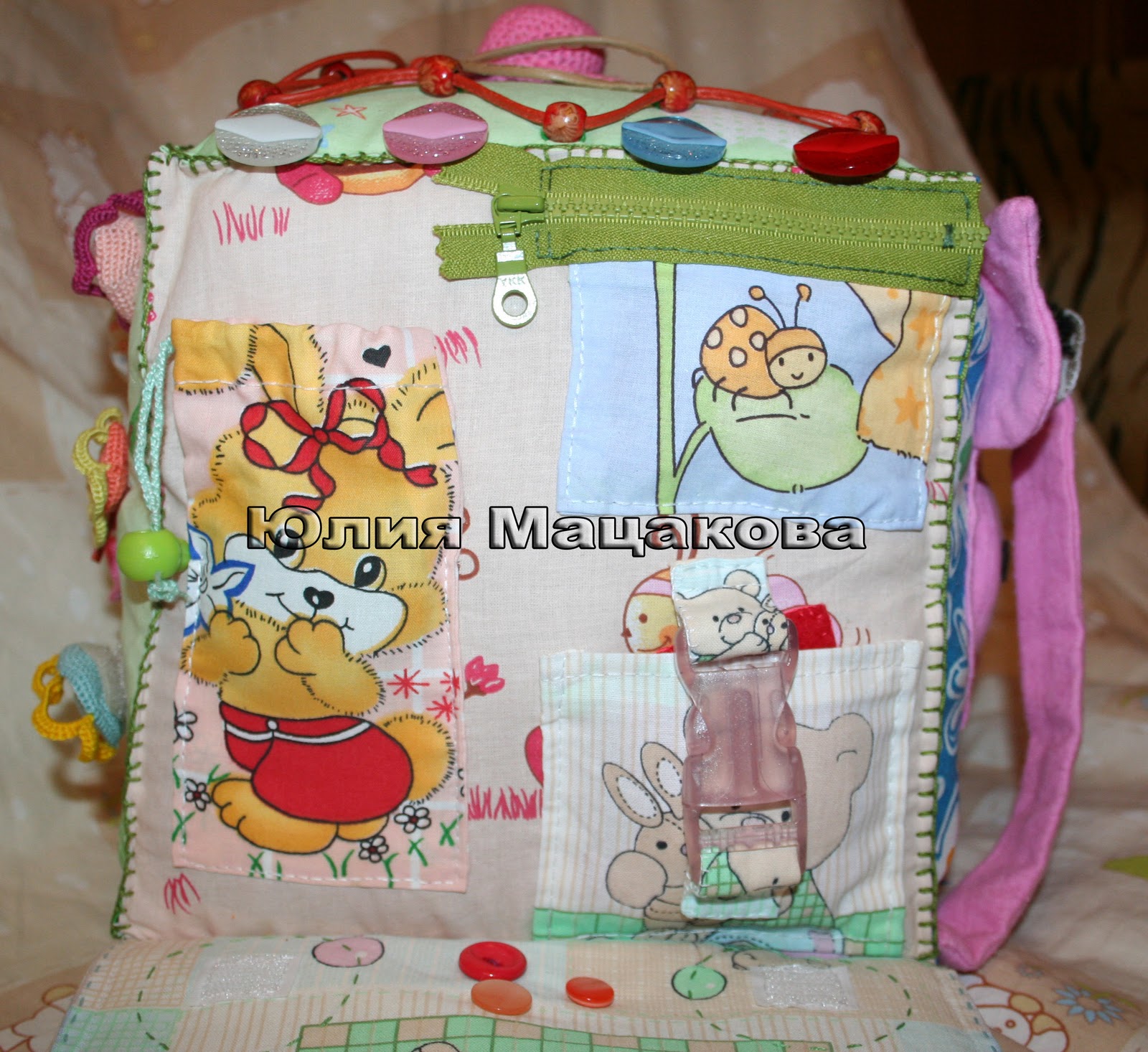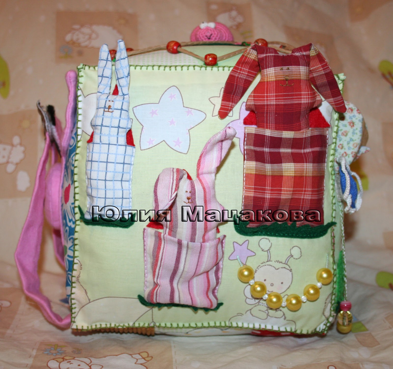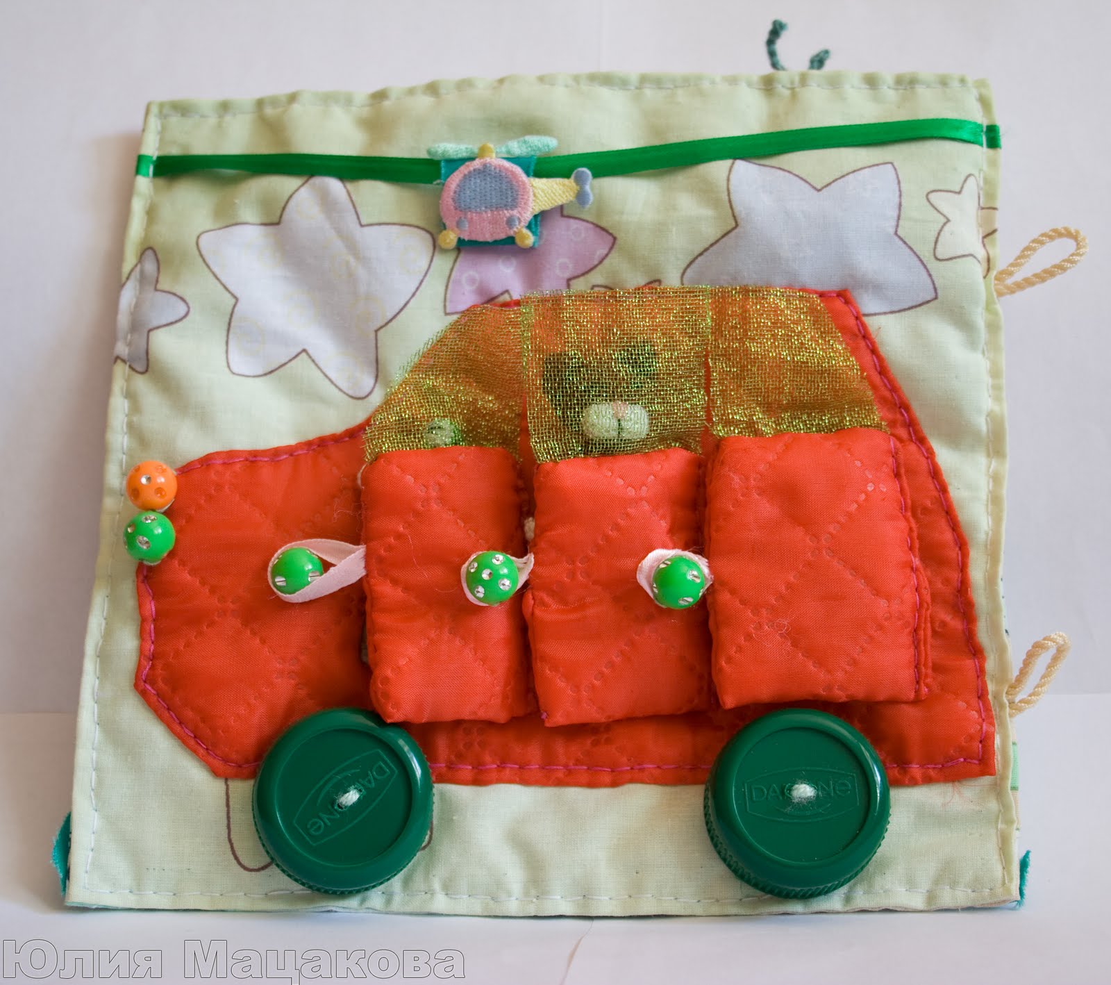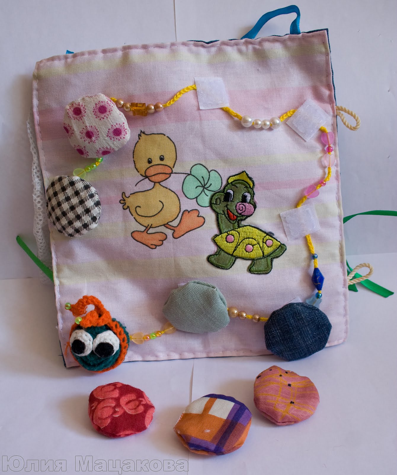 Гусеница. Сегменты на липучках. В каждом сегменте - наполнитель разных размеров и форм, в голове - звоночек.