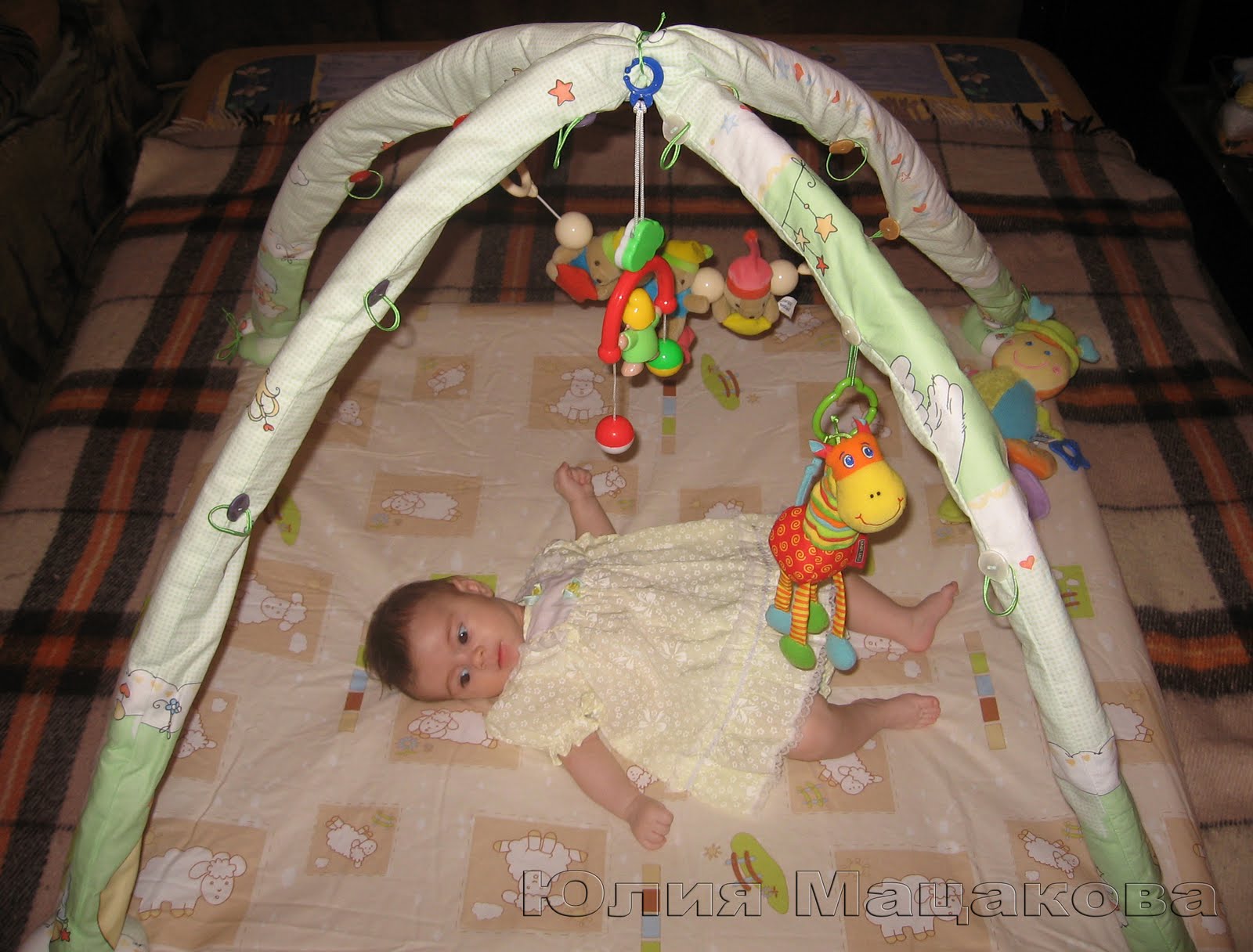 Повзрослевшему малышу также удобно играть, в "домике": можно вставать, опираясь на висящие игрушки без страха уронить арку на себя.