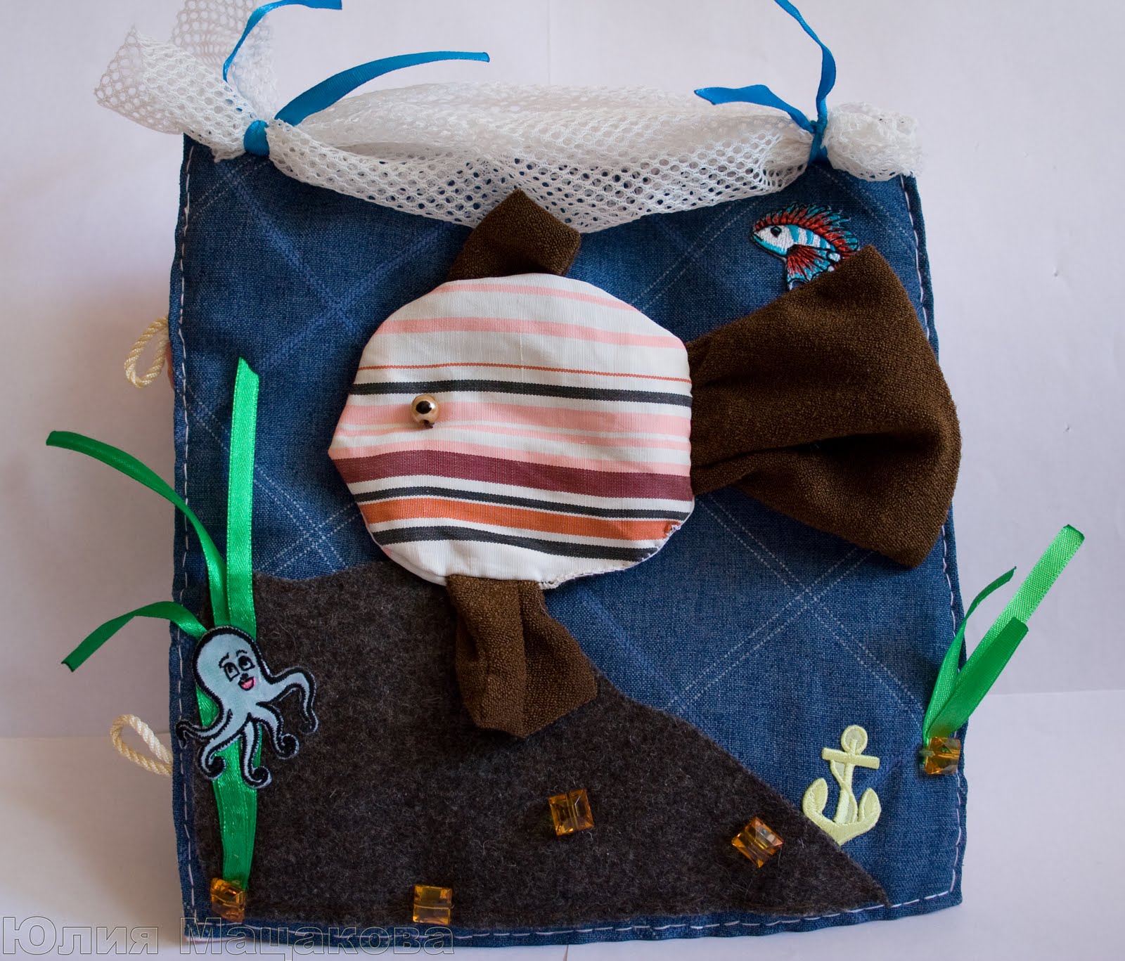 Морская тема: пеликан ловит рыбку и складывает ее себе в клюв. Рыбки на липучках.