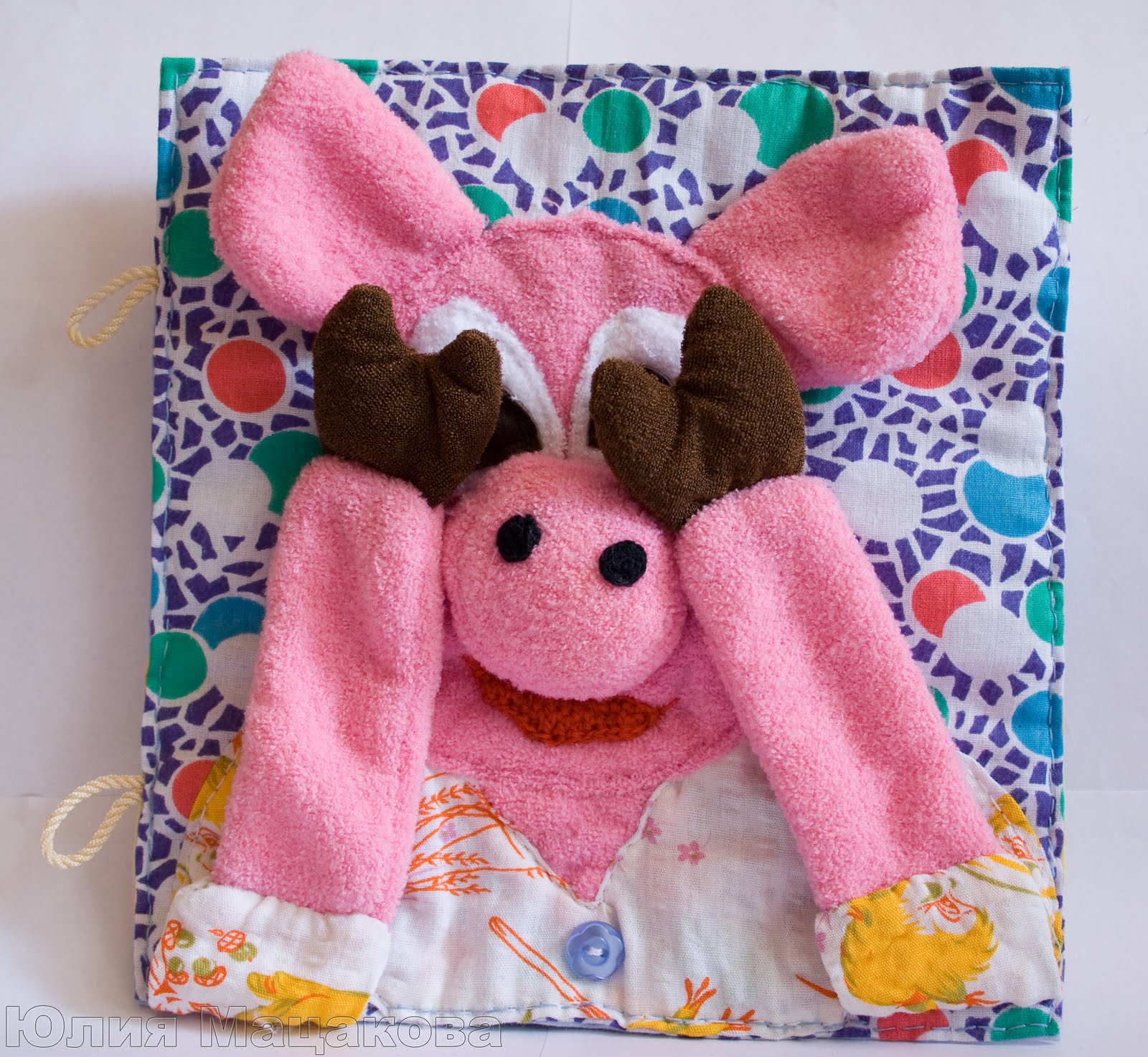 На копытцах липучки - поросенок может закрывать глазки, держаться за пятачек или щечки.