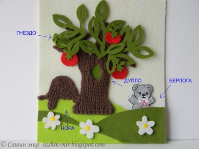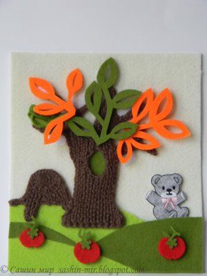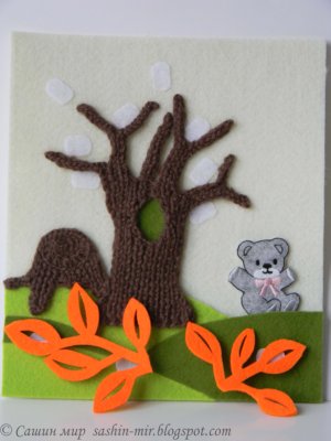 Использовала фетр, пряжу, липучки и термо-наклейку медвежонка. Размер странички - 23х20 см