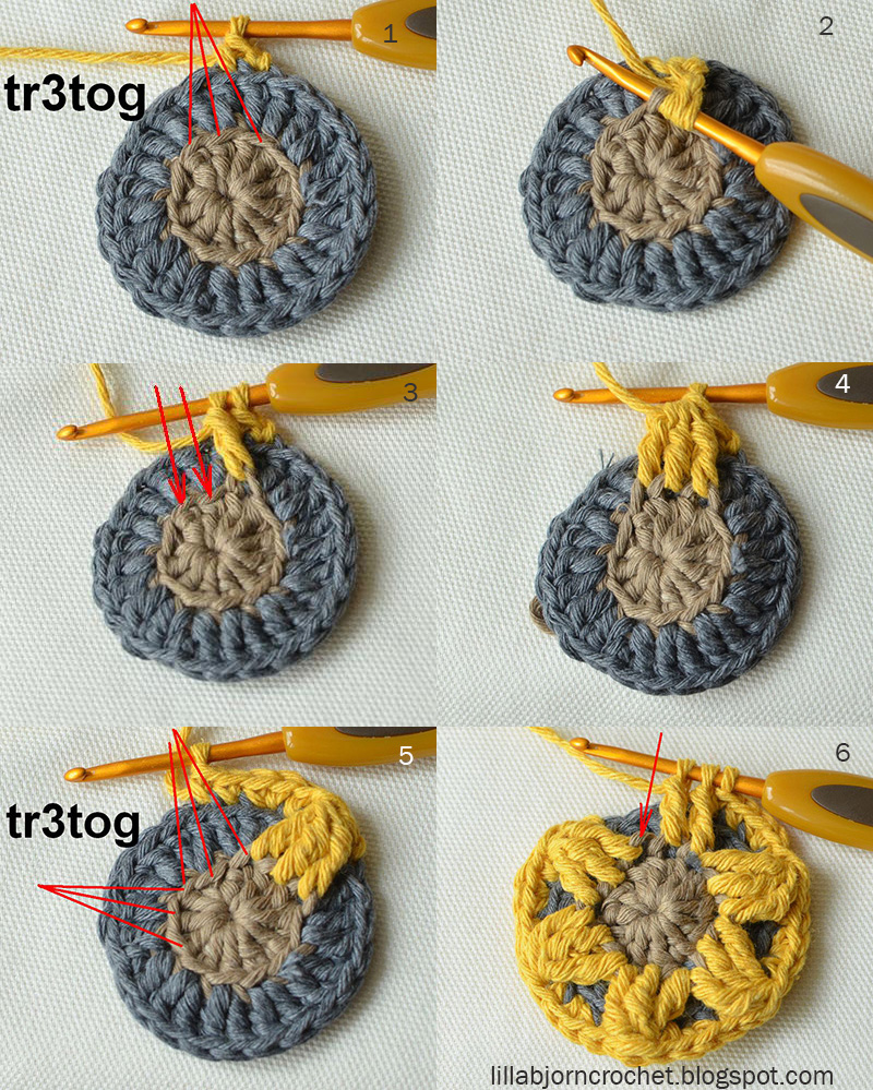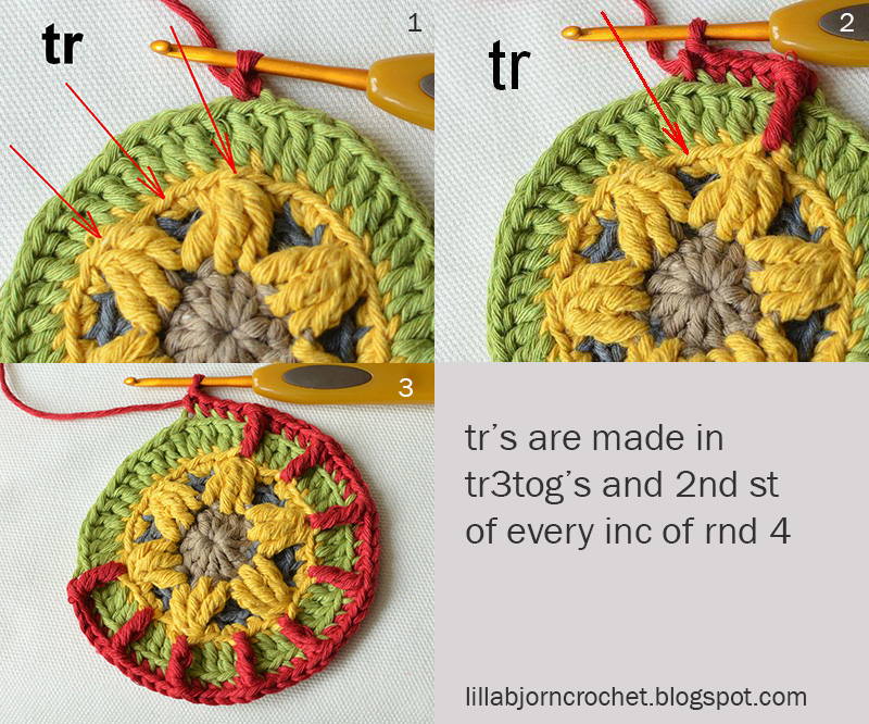 Примечание: когда вы начинаете каждый новый лепесток, сделать 1-й тр каждого tr3tog в Санкт рнд 1, где последний тр предыдущих tr3tog было сделано. Вы получите 6 лепестков на этот рнд.