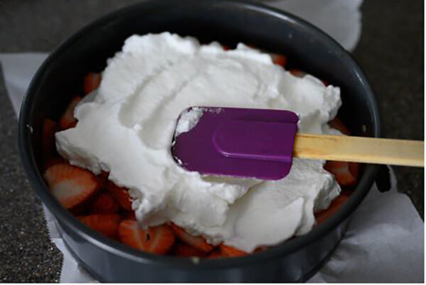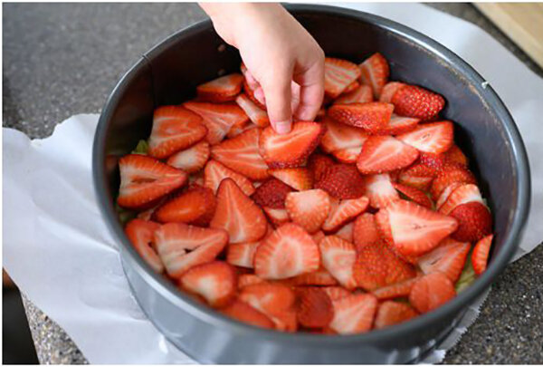 Аккуратно распределите яичные белки поверх клубники, убедившись, что они лежат ровным слоем.