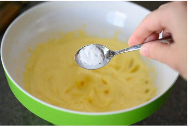 Добавьте пищевую соду, ваниль, щепотку соли и слегка перемешайте все ингредиенты.
