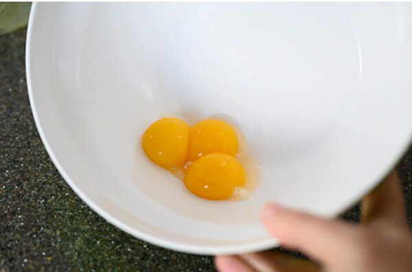 Отделите яичные желтки от белков. Поместите желтки в одну миску, а белки в другую. Поставьте белки в холодильник.