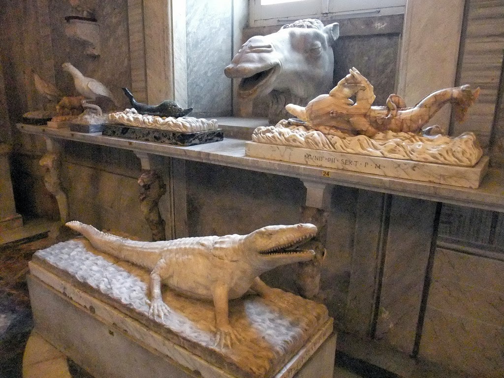 Через Восьмиугольный дворик можно пройти в Зал Животных-самый настоящий зоологический музей в мраморе,поражающий разнообразием видов,среди которых -множество экзотических и фантастических,и несколько-уже вымерших;многие изваяния были отреставрированы или изготовлены мастерами 18 века.