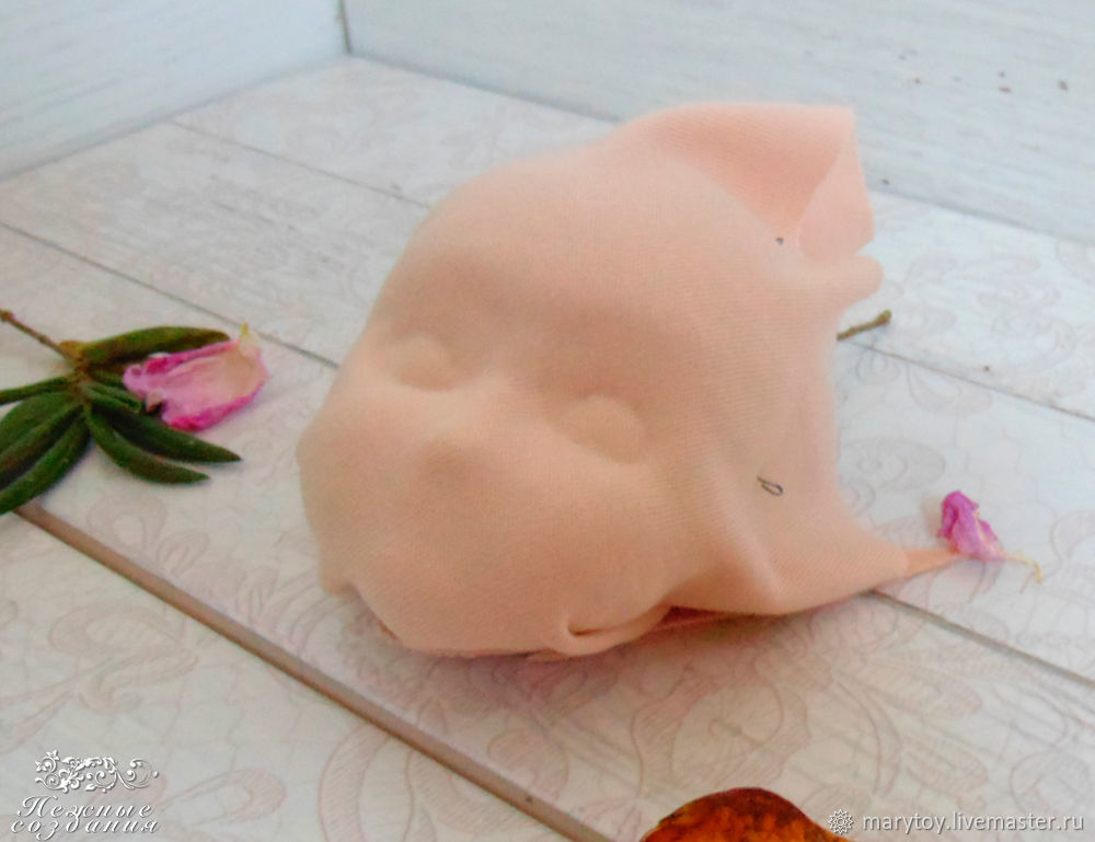 Выворачиваем, очень плотно набиваем синтепухом. И намечаем карандашом, либо исчезающим маркером личико.