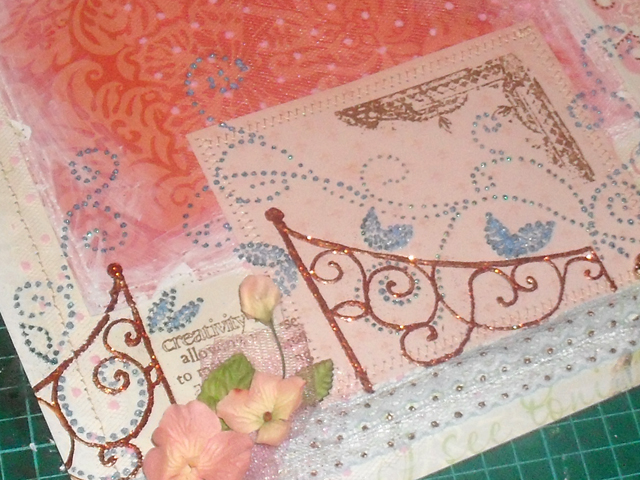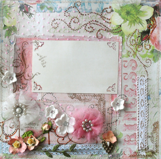 Вечер близился, я продолжая работу над свадебным альбомом, вдруг, неожиданно даже для самой себя решила сделать МК по декору странички. Хочу показать вам как я делала вот такую кованную решетку с цветущим садом).