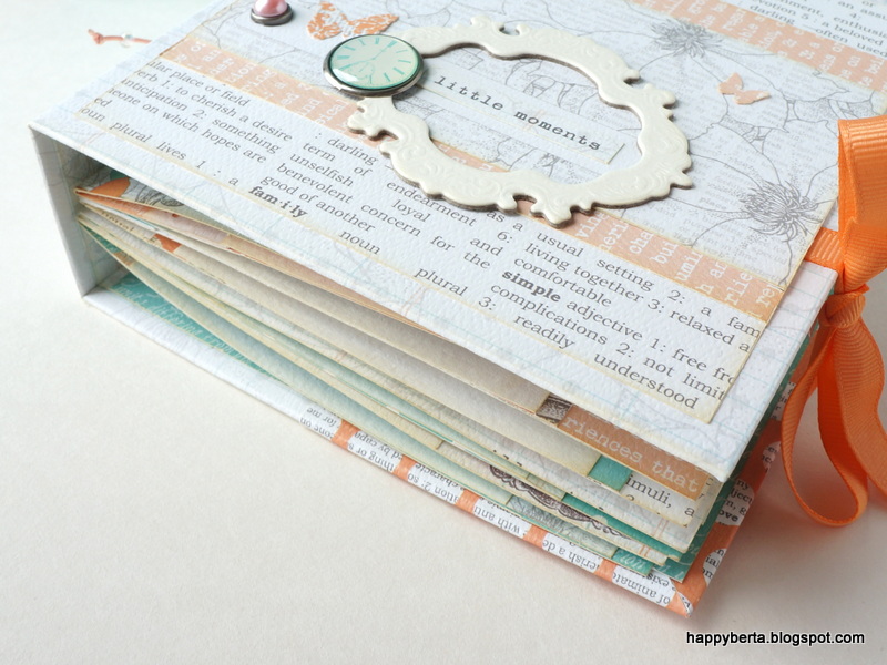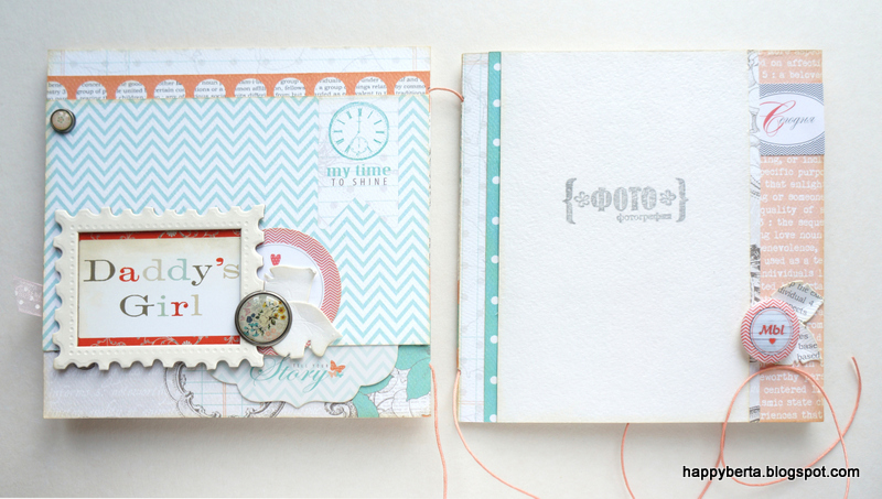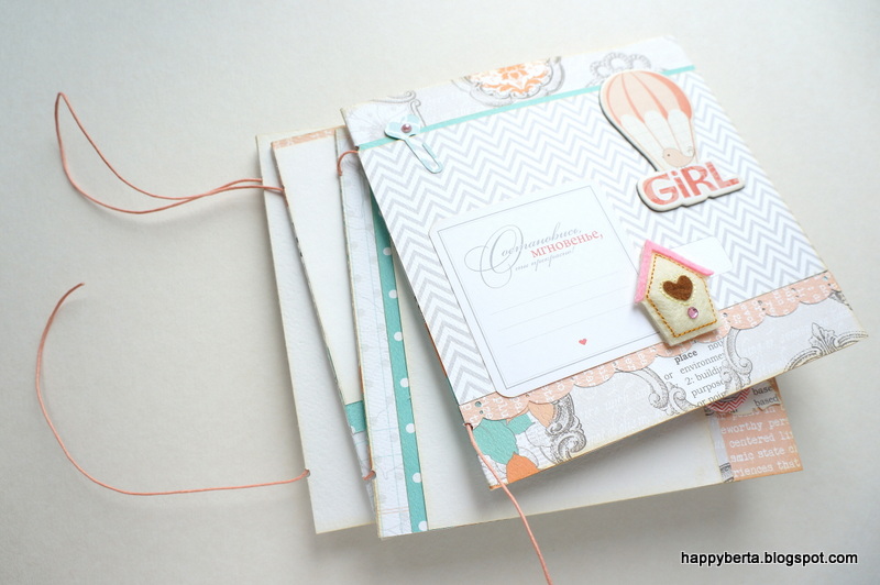 Каждую заготовку сгибаем пополам, получается "книжечка" 15х15 см. Эти заготовки идут в альбоме одна за другой. Выбираем их порядок и декорируем странички.