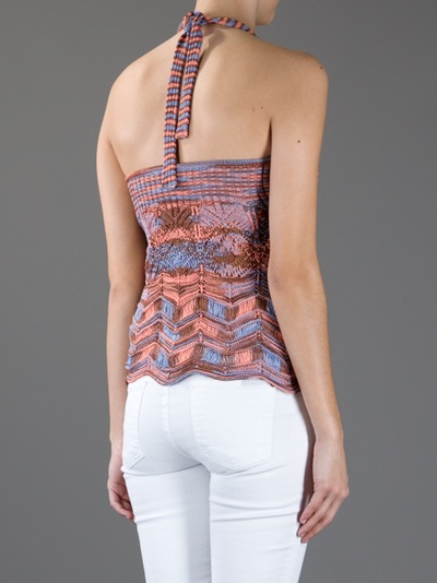 2. Halter neck top . Летний топик/маечка - горизонтальные полоски сверху переходят в ажурную центральную часть с ромбами,а затем в зигзаги-шевроны в нижней части..