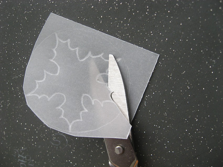 Я рисую их без трафарета (но можно сначала сделать трафарет)... Без трафарета они получаются натуралистично-кривоватые... ))) Сначала намечаю круг, а потом делю его на пять лепестков... Рисую гобеленовой иглой (№18, для вышивки, с тупым кончиком), положив кальку на коврик для мыши.