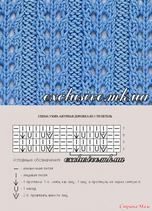 Ажурные узоры спицами .