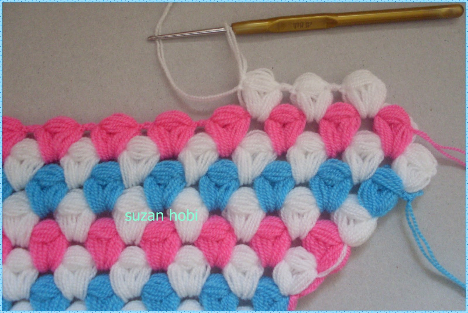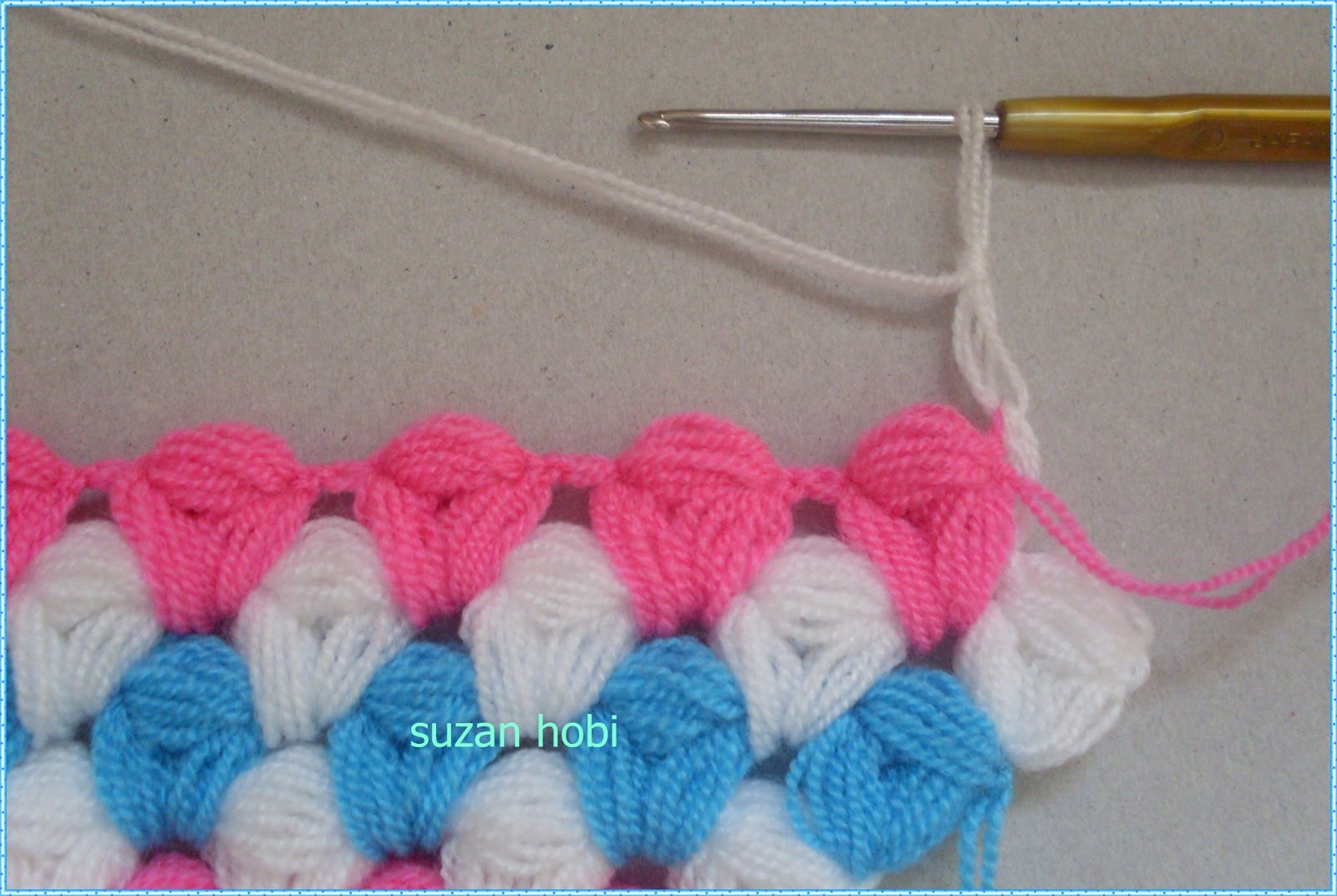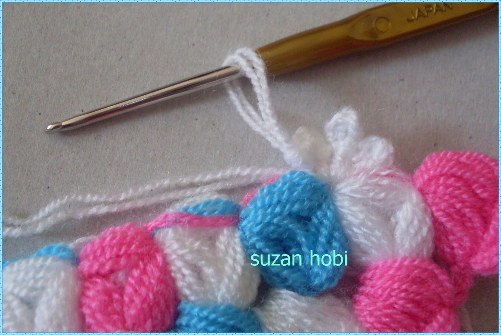 yine ok işaretiyle gösterdiğim yere tığımla girip mavi ipliği bu şekilde yukarıya