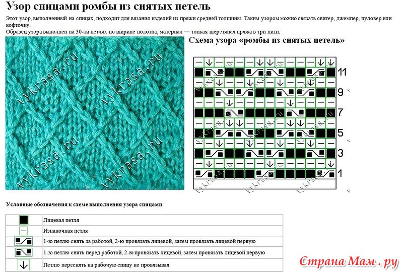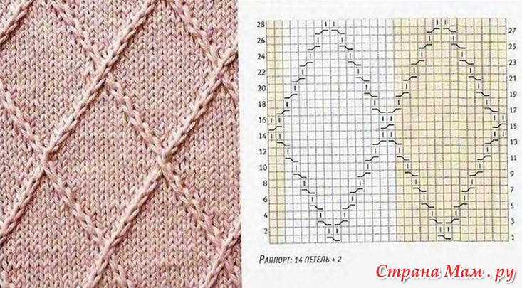 Образец вяжем узором посередине, ромбов я перепробовала кучу... Можно взять любые, какие вам нравятся