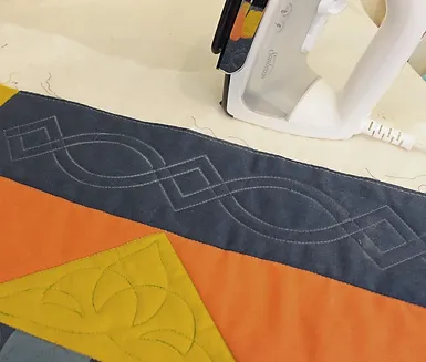 У некотрых бордюрных трафаретов есть встроенный угловой дизайн. Таким образом можно спроектировать дизайн вдоль всего квилта.