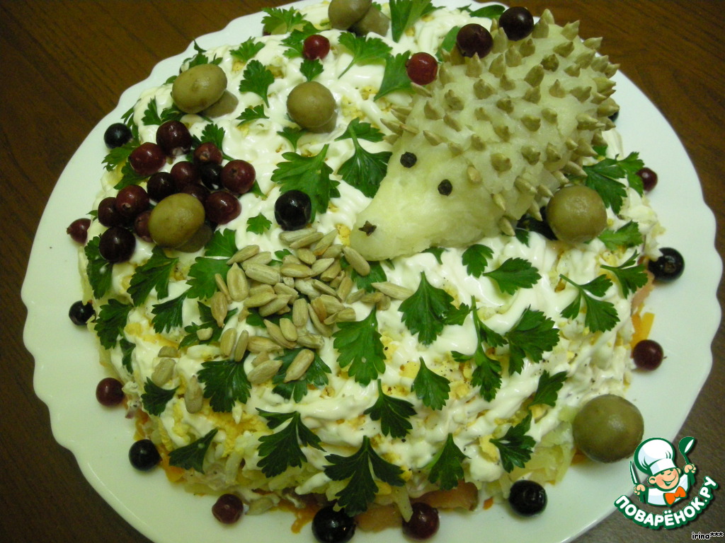 | Рецепт "Салат «Ежик на полянке»" | |||||||||||||||