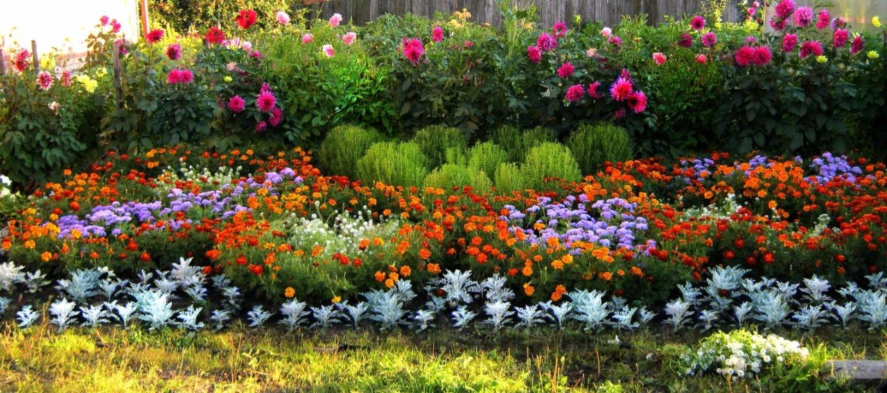 Можно перечислить и однолетние цветы, которые только подчеркнут красоту вашего цветника: сальвия (шалфей) красная и синяя, кореопсисы, бархатцы от карликовых до гигантских сортов, львиный зев, различных расцветок люпины, космея, различные подсолнечники, циннии, петунии.