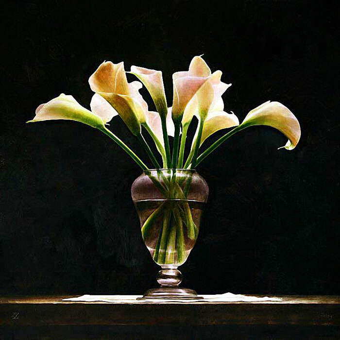 Свои картины он создает только при помощи кистей, бумаги и красок, и этим способом он может написать практически все, начиная от натюрмортов и заканчивая пейзажами. Оттенки и полученные цвета позволяют получить результаты, которых не достичь никаким другим способом.