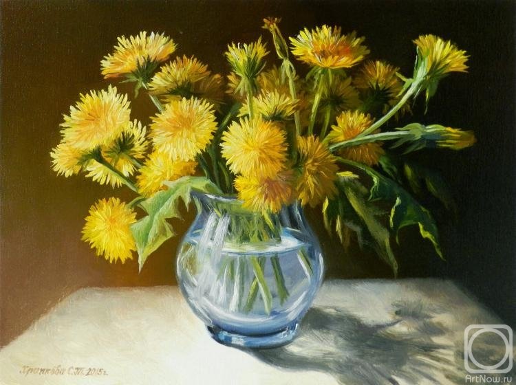 В середине 1890-х годов Левитан любил писать натюрморты. В его работах этого жанра чувствуется жизнеутверждающий выстраданный тонус, особая любовь к цветению, солнечным началам природы, столь прекрасно сосредоточенным в венчике или крестике даже самых простых полевых цветов, ибо каждый из них устроен "по образу и подобию солнца" и есть "рассказ о солнце, исполненный выразительной силы". На его полотнах мы видим скромные букеты полевых цветов (васильки, одуванчики), гроздья сирени, написанные с пронзительной нежностью и теплотой, в них воссоздана словно сама стихия цветения жизни во Вселенной.