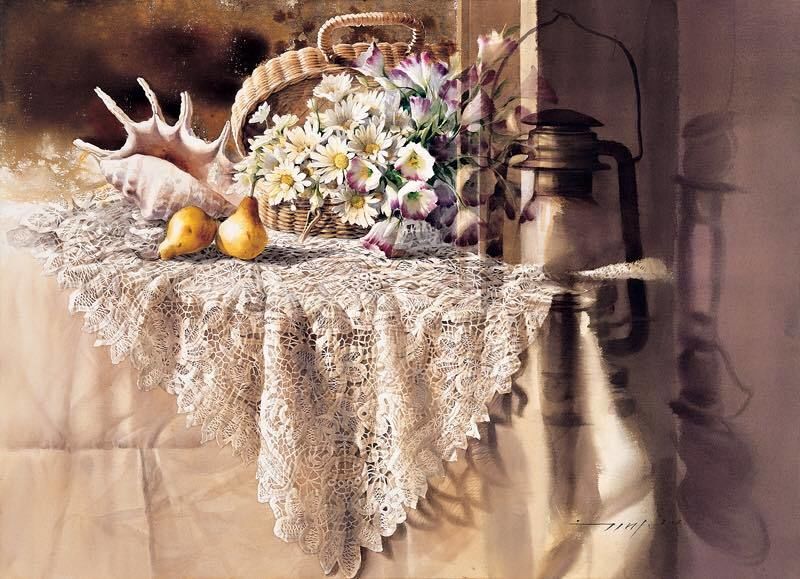 Сегодня хочу представить вам работы современной корейской художницы You Mee Park. Ее чудесные акварельные натюрморты, картины цветов наполнены своим особым метафизическим смыслом и философией. Работы ее разнообразны: и совершенно живые, кажется, написаны в несколько прикосновений к бумаге, и подробные, с кропотливой проработкой деталей и сюжета (оцените кружева салфеток)!