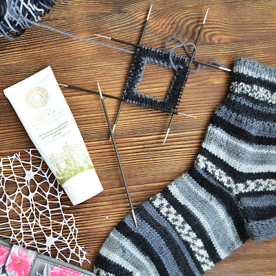 Связаны из толстой дундаги, чулочными спицами № 3,5. Серый цвет -это другая более прочная нить, добавлена в резинку и пяточку.