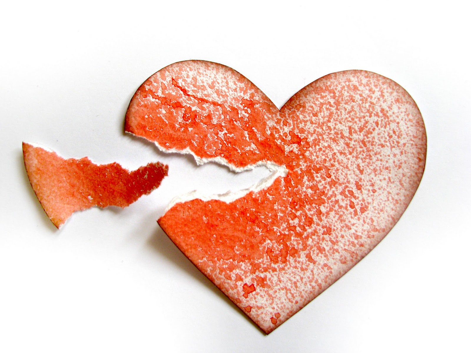 Распыляем спрей-краску красного цвета так, чтобы одна сторона сердца была менее окрашена.