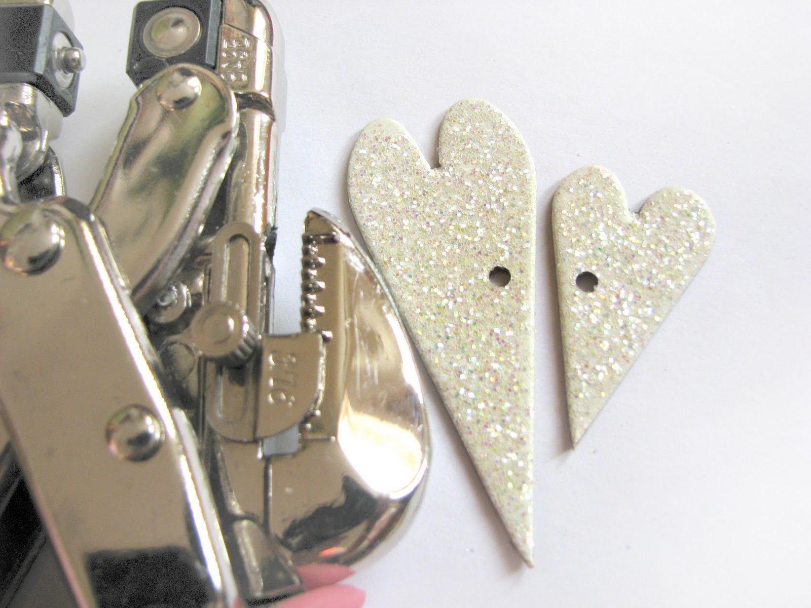 Теперь берем два готовых небольших сердечка и делаем в них отверстия, для того чтобы потом их "связать".