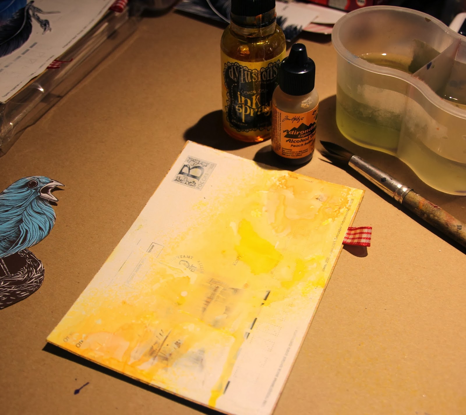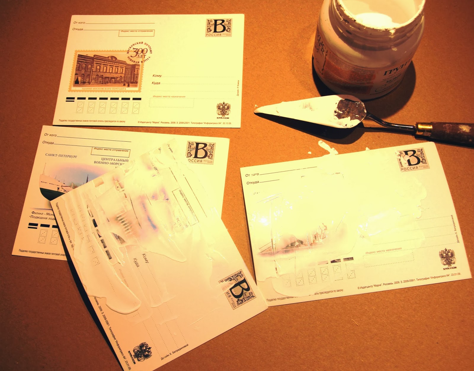 Почтовые карточки грунтую акриловым грунтом и даю просохнуть.