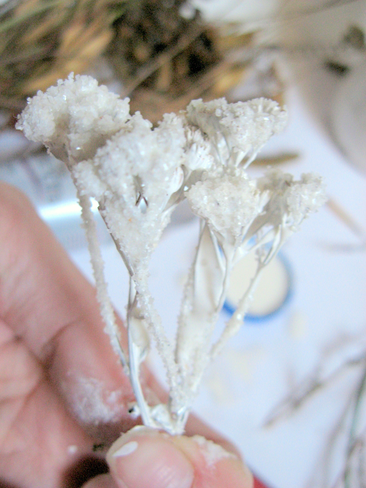 Здравствуйте, дорогие читатели и гости нашего блога!Представляю вам мастер-класс по изготовлению заснеженных веточек, травинок и прочих сухоцветов.Использовать их можно на открыткаках, либо оживить при помощи них ваш новогодний интерьер.