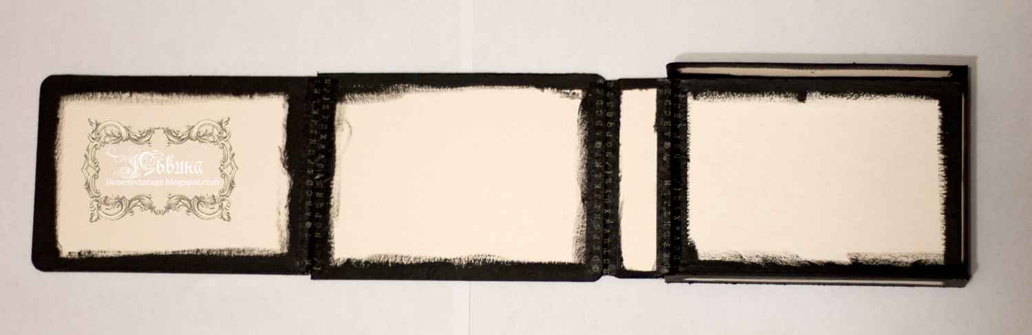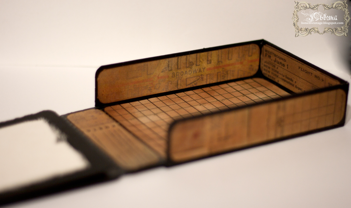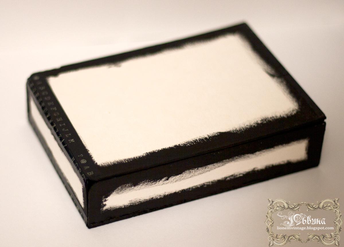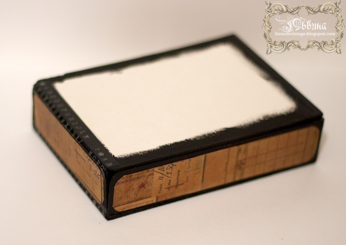 Края скруглила 1,4" и обработала дистресс винтаж фото. Начинаем оклеивать коробочку.
