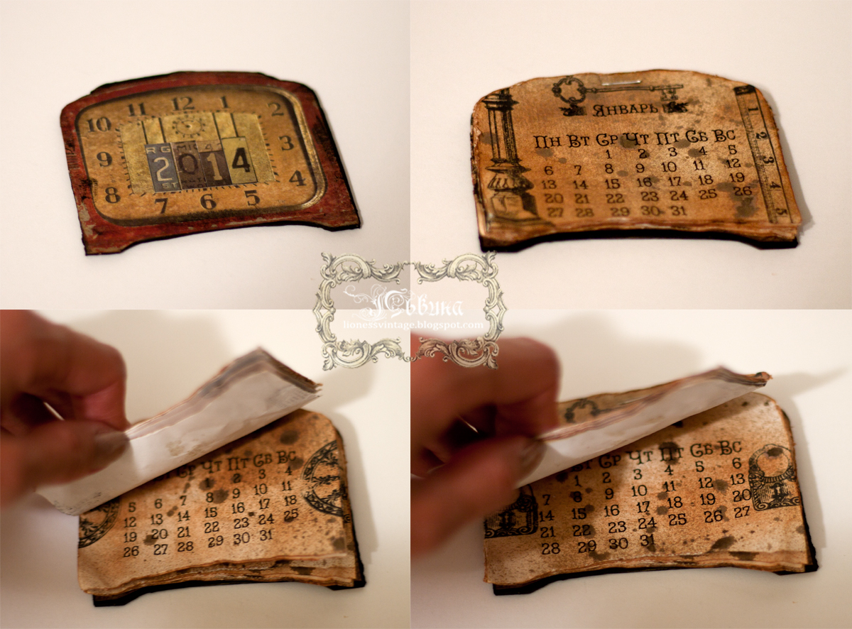 прошлась штампами, хорошо помяла листочек и дальше окрашивала спреями шоколадных оттенков, вырезаем месяца под заготовку "Часы".