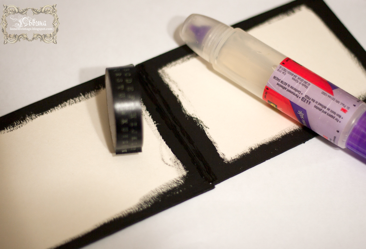 Первоначально склеиваем коробочку, далее раскладывающие элементы. Лишнее обрезаем и снова прокрашиваем черной краской.