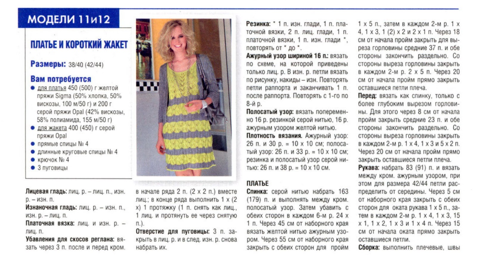 Короткий жакет благородного серого цвета просто незаменим прохладным летним вечером. Жакет очень удачно дополнит платье, связанное таким же рисунком. Полоске на юбке, однотонный лиф и большой вырез горловины - очень женственно!