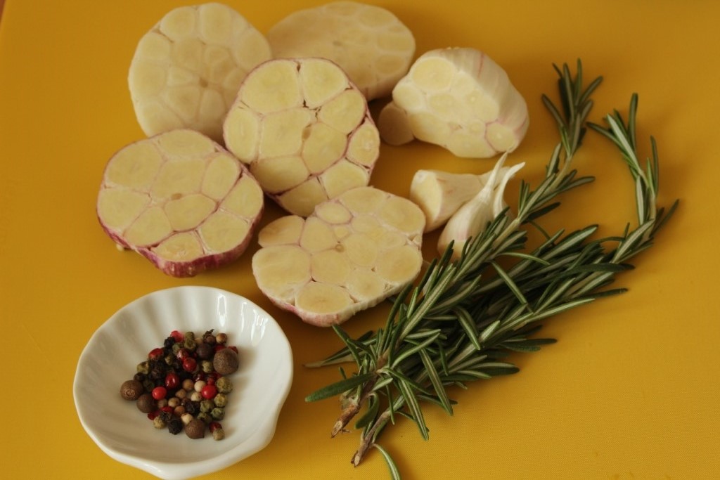 Чеснок очистить от верхней сухой кожицы, розмарин промыть и обсушить. Чеснок очистить от верхней сухой кожицы, розмарин промыть и обсушить.