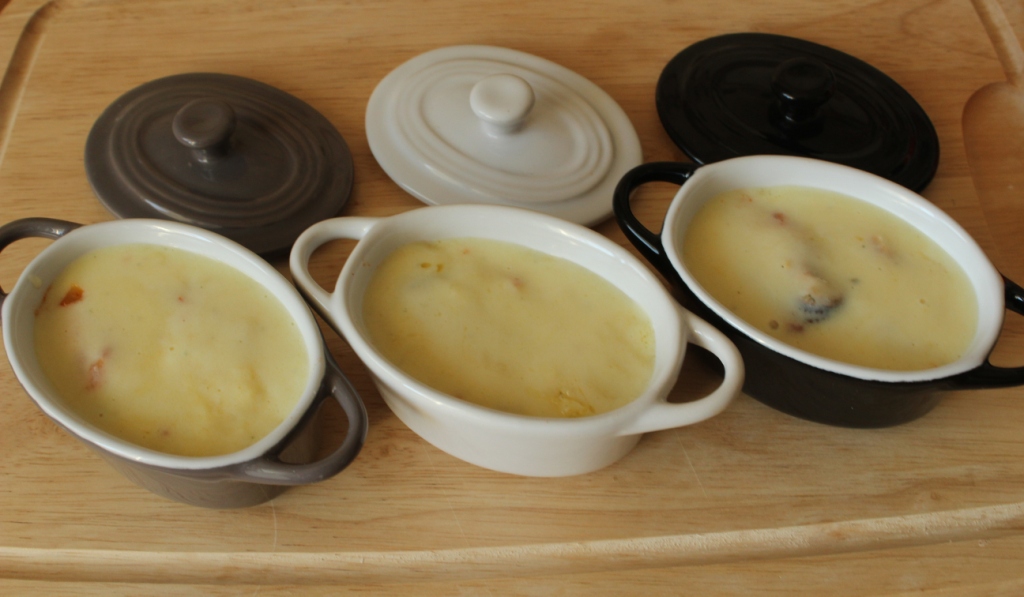 Разложить мидии с томатным соусом по жаропрочным формочкам.